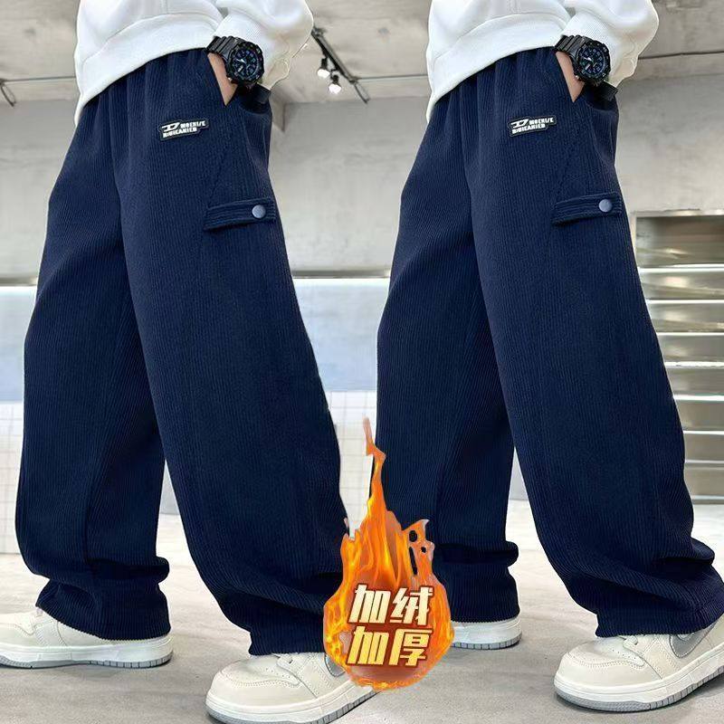 男童加绒裤子灯芯绒休闲裤2025休闲新款中大童男孩儿童运动裤长裤