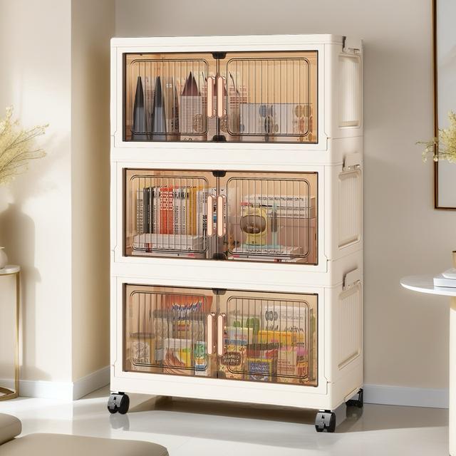 【50面宽三层】 TZ 竖纹折叠款可移动儿童衣柜杂物整理收纳柜储物