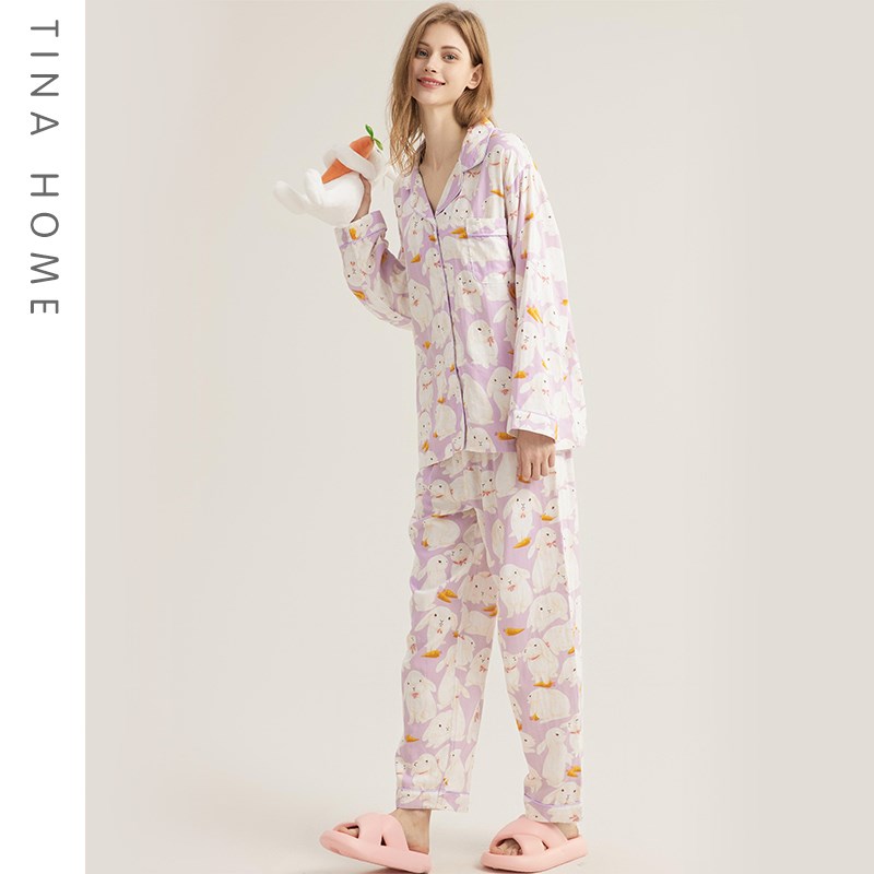 TINAHOME日系兔子睡衣女春B秋家居服可出门外穿居家服长袖套装