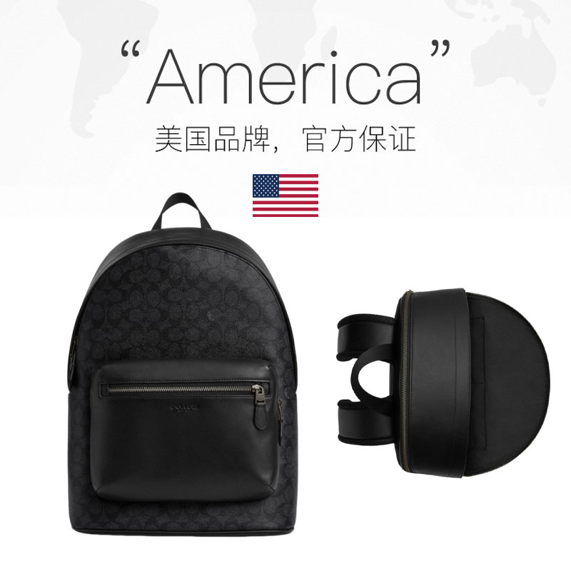 【自营】COACH/蔻驰大号男士PVC配皮老花双肩背包旅游出行双肩包