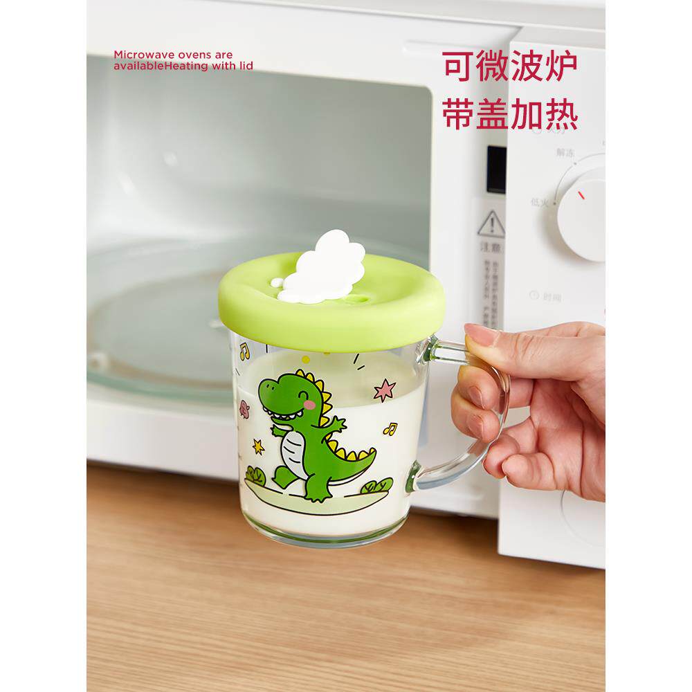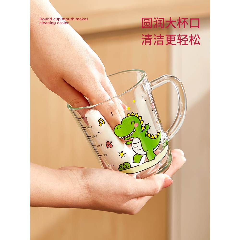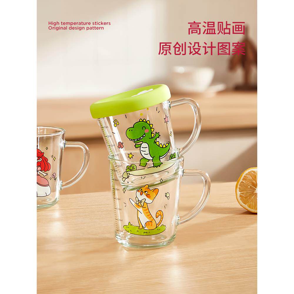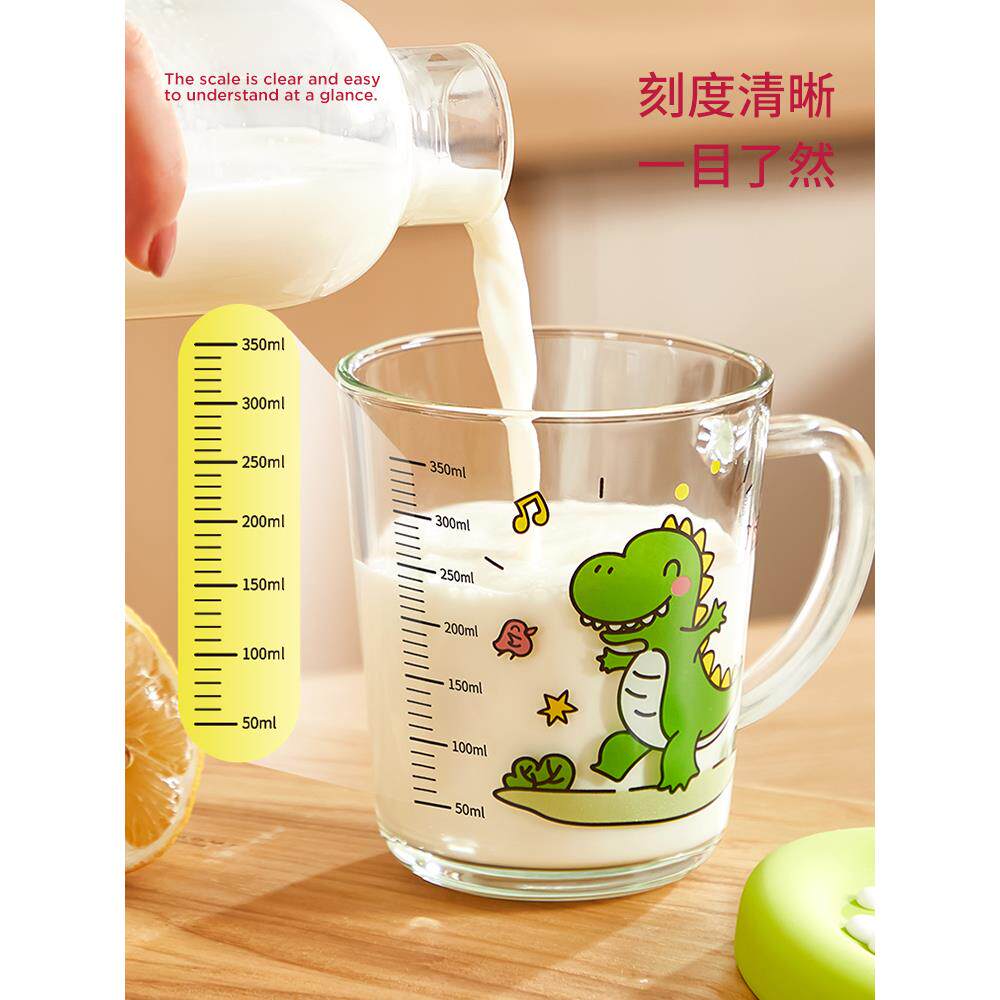 3岁以上儿童带刻度牛奶杯,玻璃奶粉家用水杯,微波炉加热