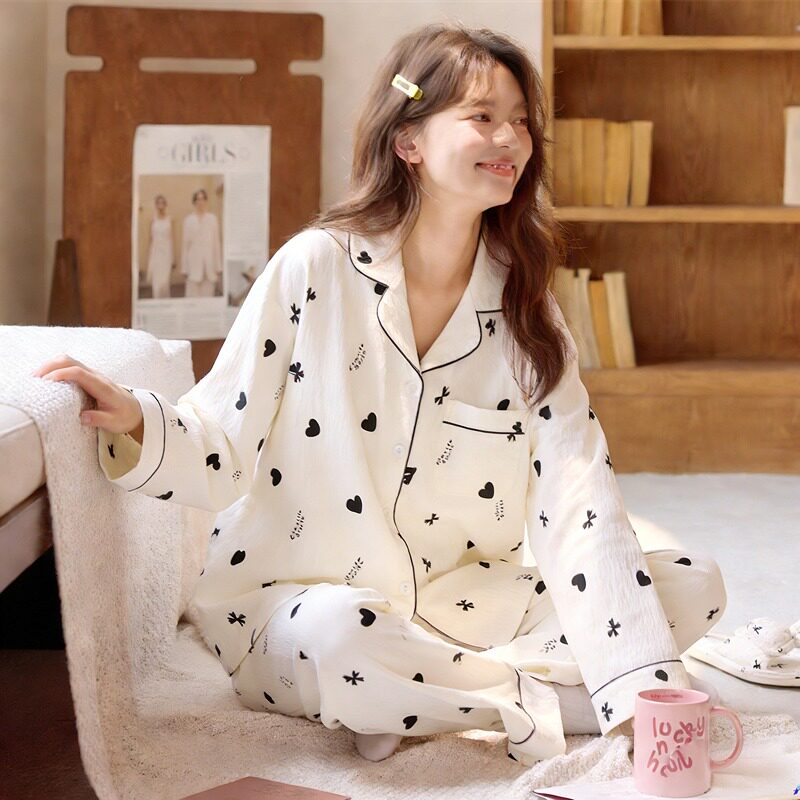 2026春季云朵棉睡衣女士长袖长裤宫廷风蕾丝花边宽松家居服套装1