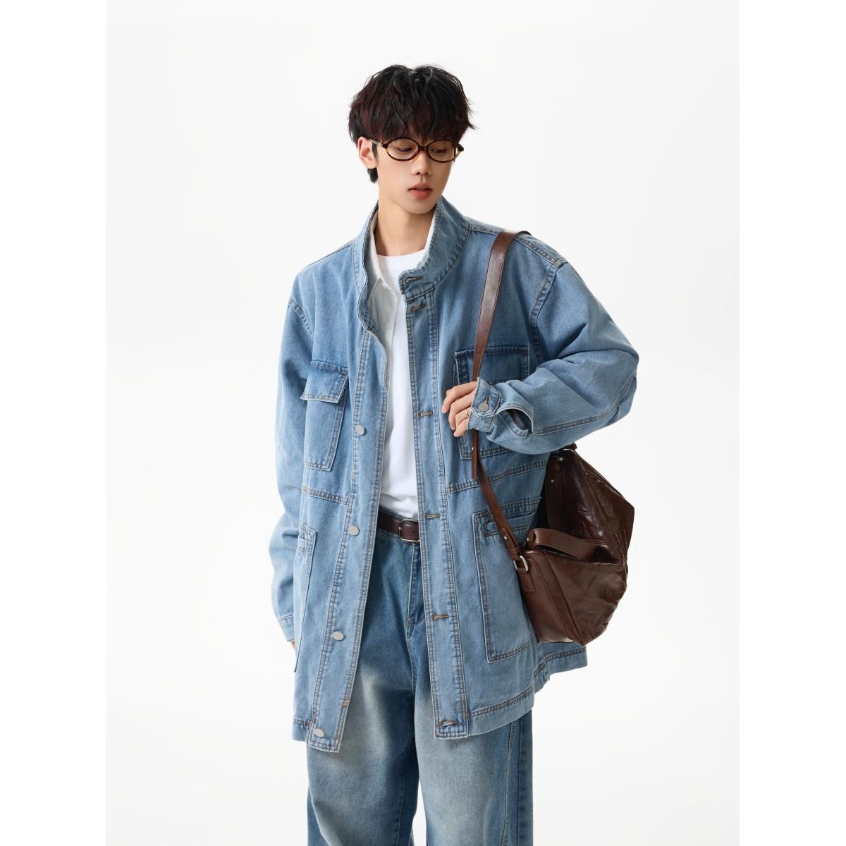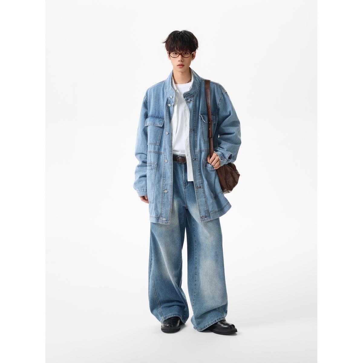 尾郎的店秋季美式宽松oversize中长款牛仔外套男痞帅工装夹克情侣
