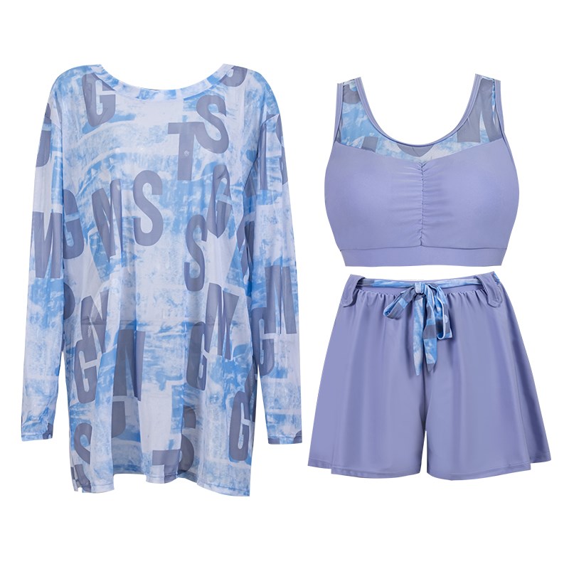 运动大码泳衣女分体三件套长袖罩衫微胖mm显瘦遮肚保守学生泡温泉