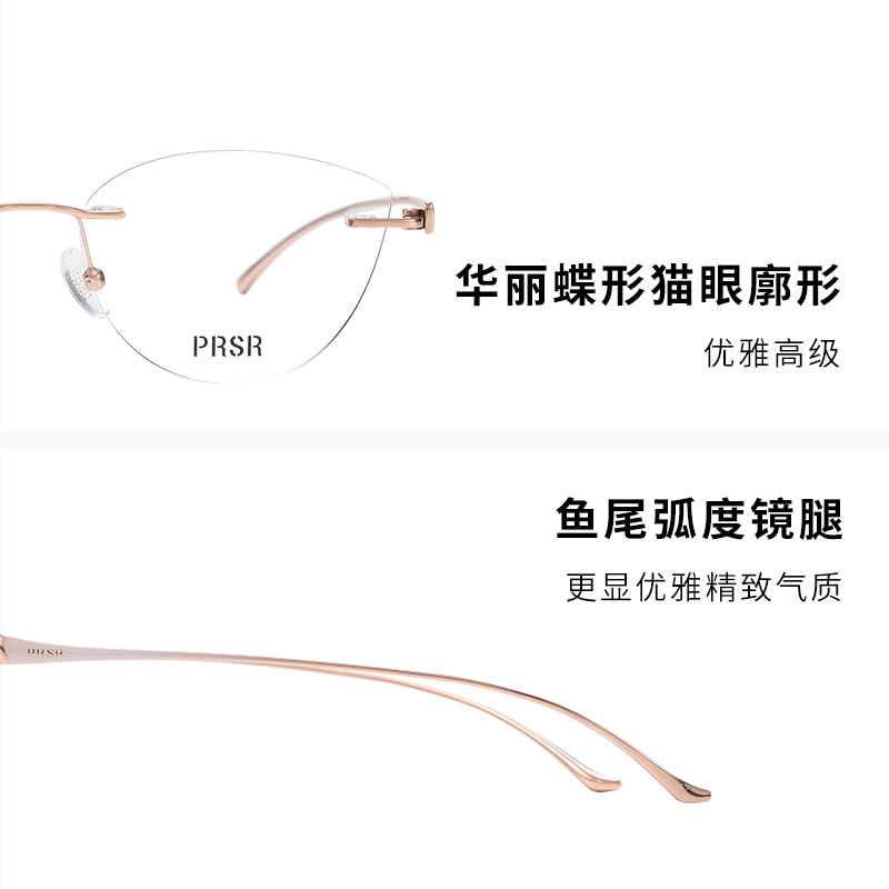 帕莎2025年新款超轻纯欲风猫眼无框眼镜女高级感防蓝光近视配度数