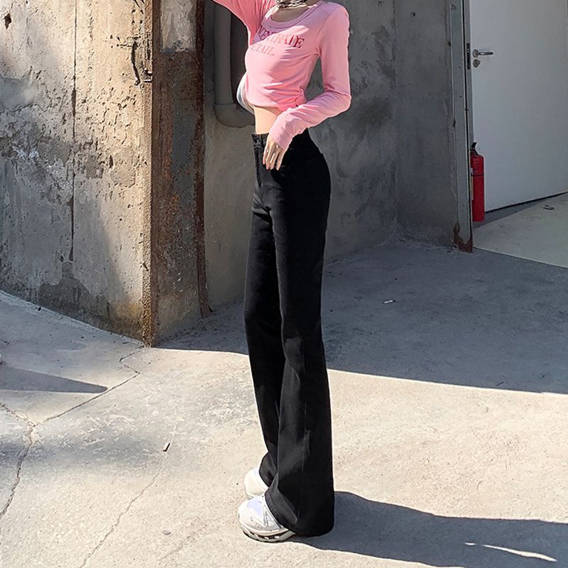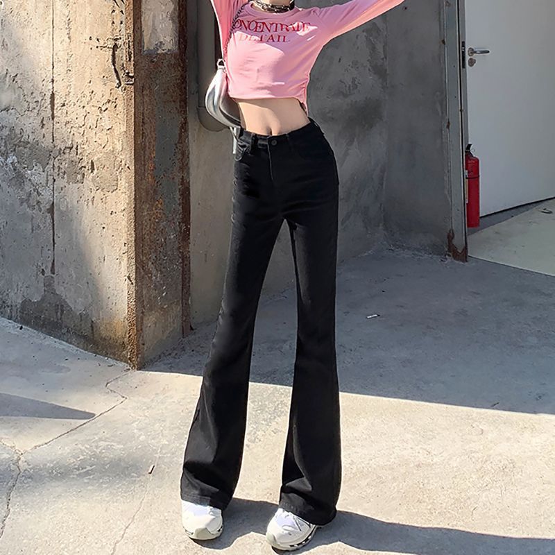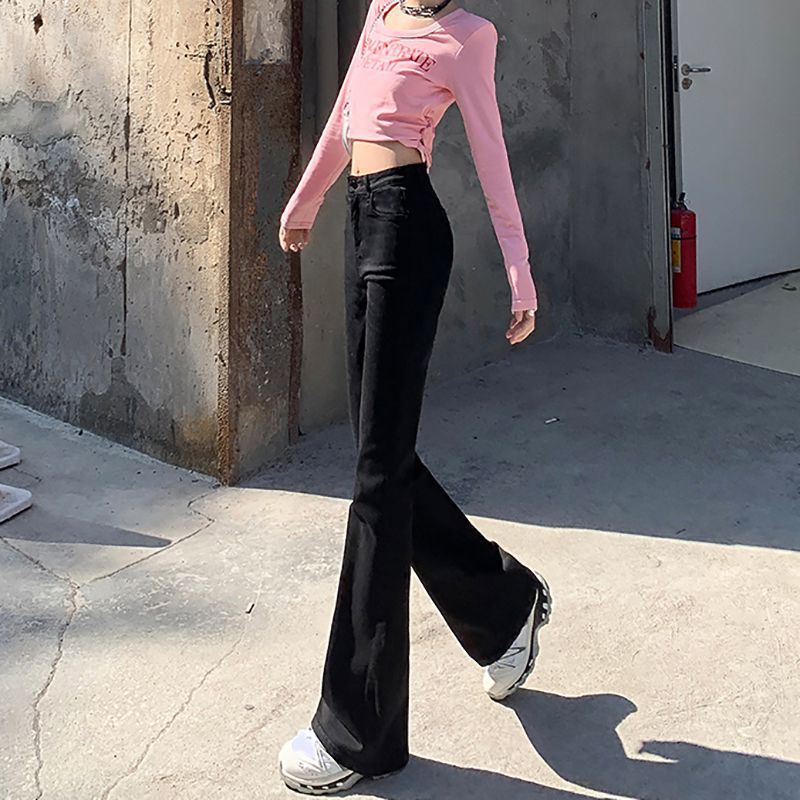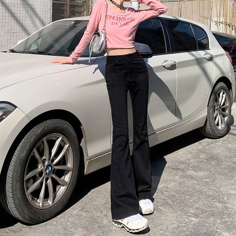 美式休闲辣妹韩版微喇牛仔裤女秋季新款高腰时尚微喇叭牛仔裤潮