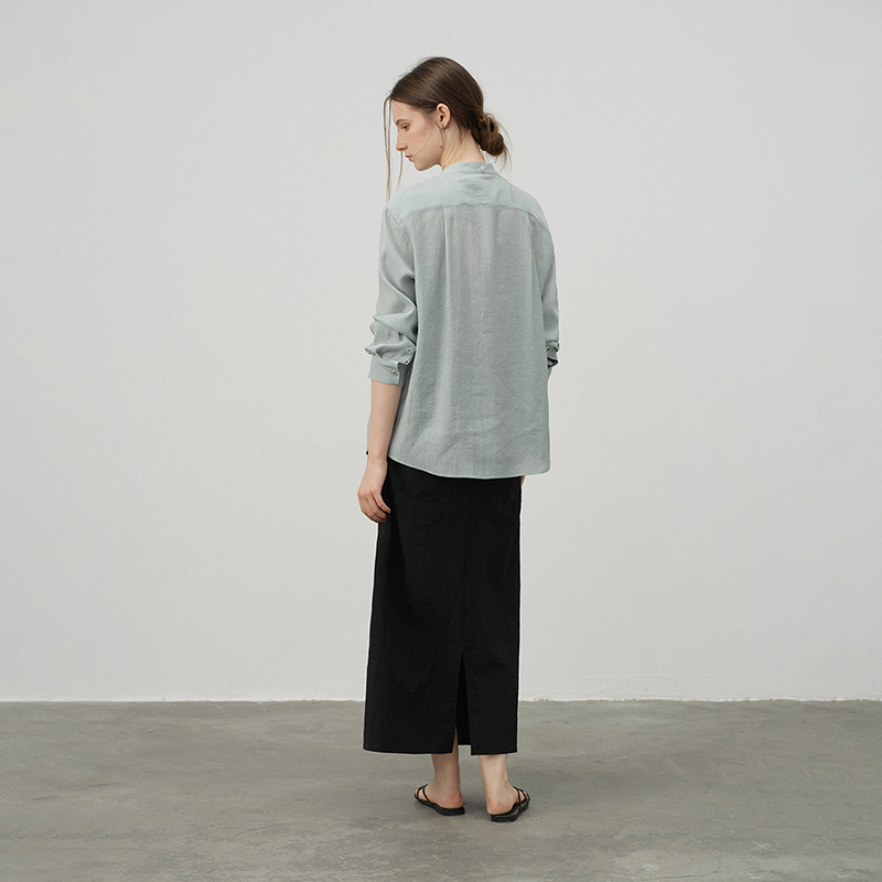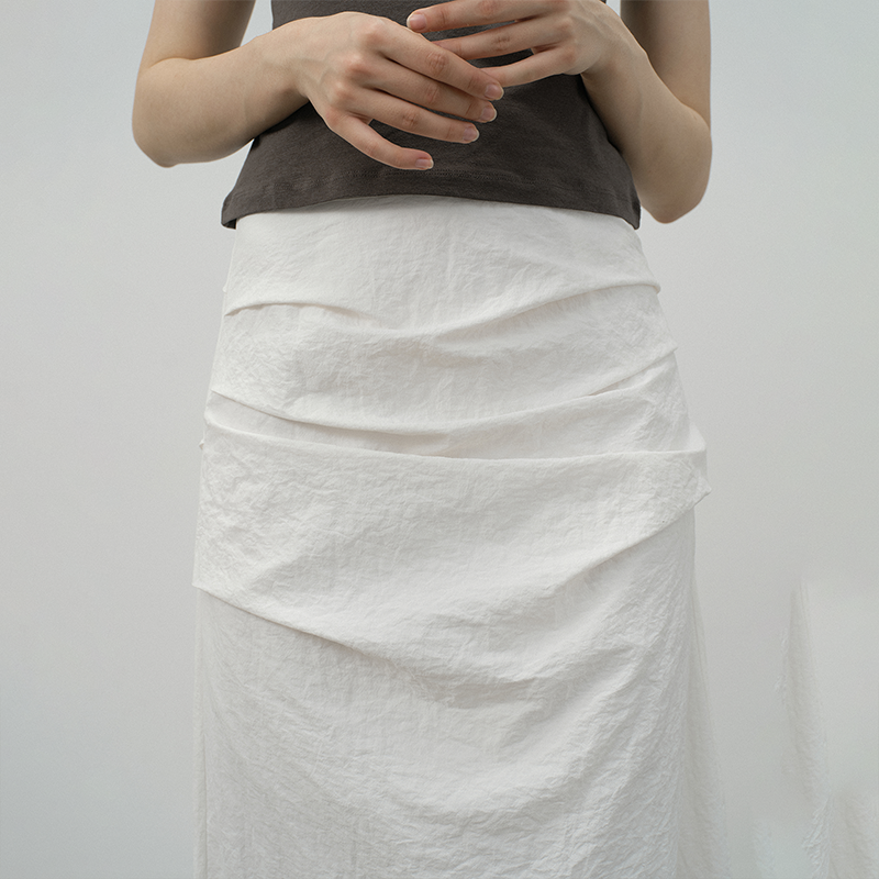 SONDERS 染整工艺 自然褶皱肌理感纯色高腰开衩微A半身裙