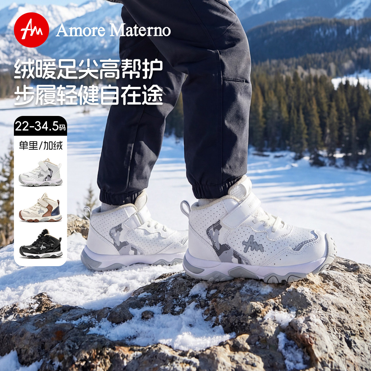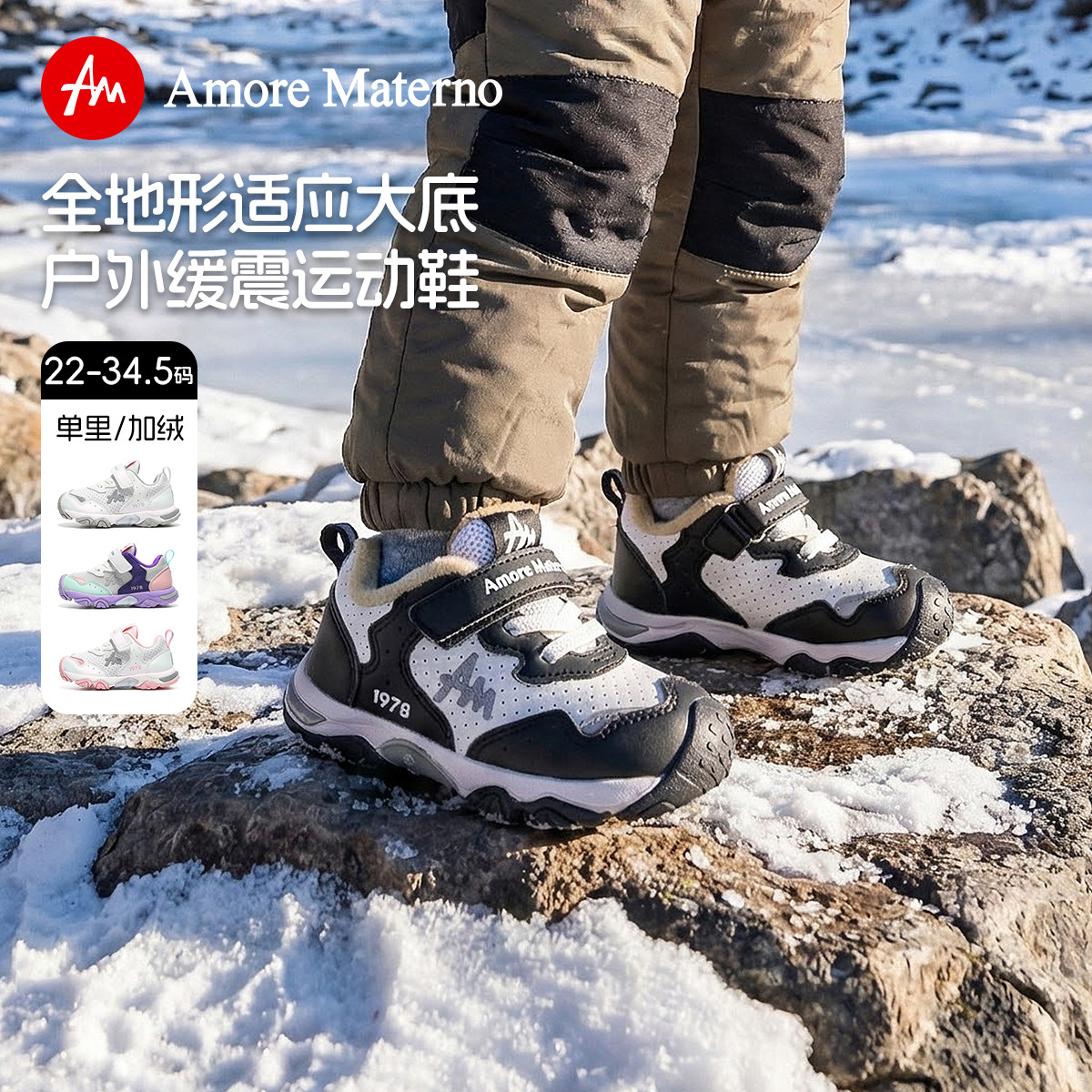AM童鞋男童机能鞋儿童秋冬款加绒棉鞋幼儿园鞋宝宝运动鞋女童棉鞋