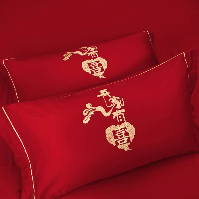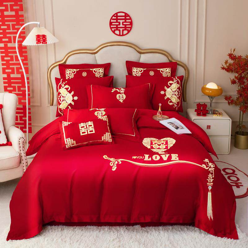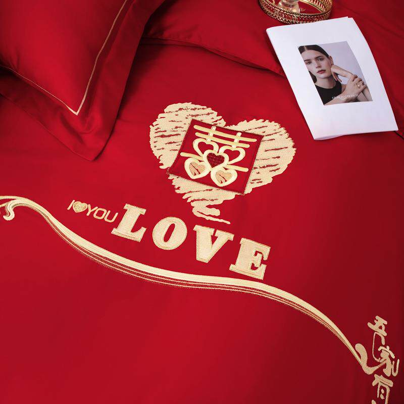 轻奢全棉红色结婚四件套婚庆床上用品新中式刺绣床单被套南通家纺