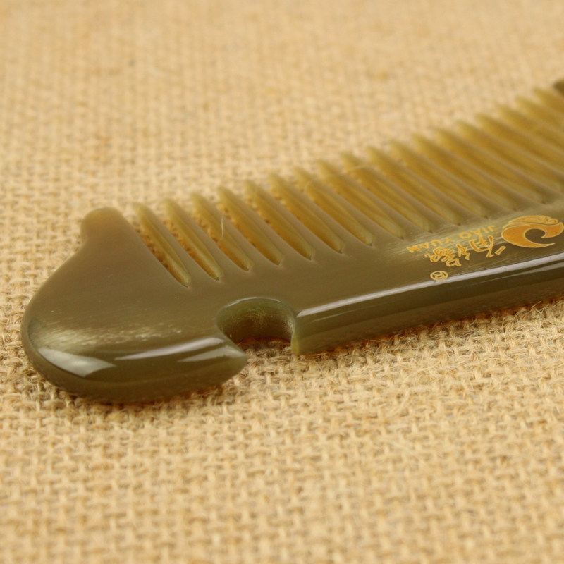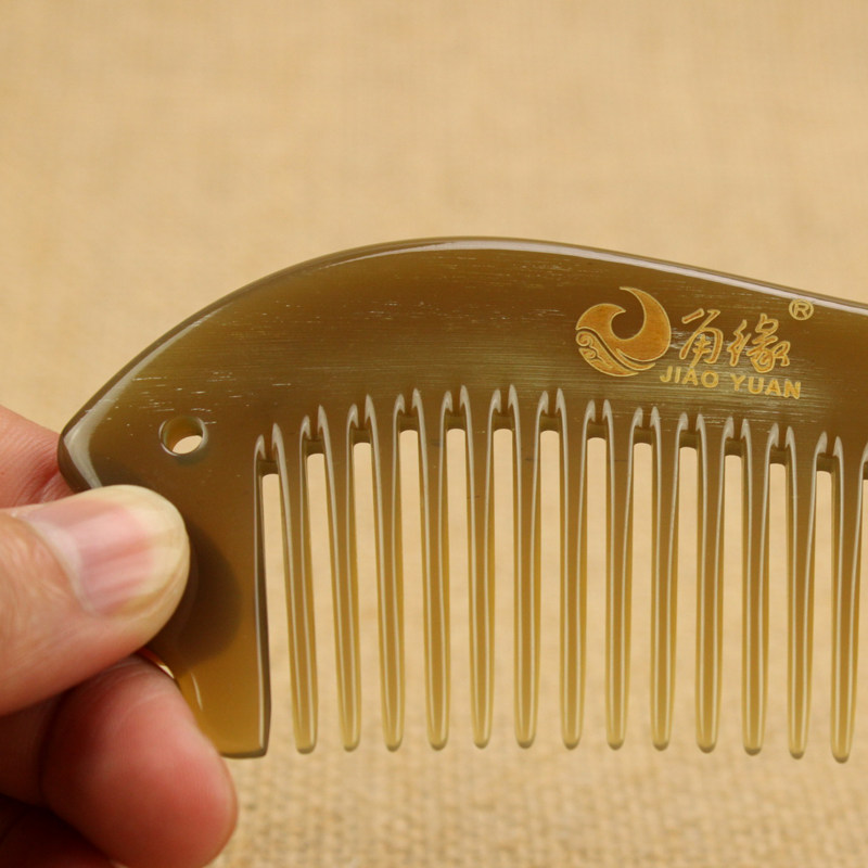 角缘白水牛角梳子正品个人防护静电女长卷发梳随身护理天然牛角梳