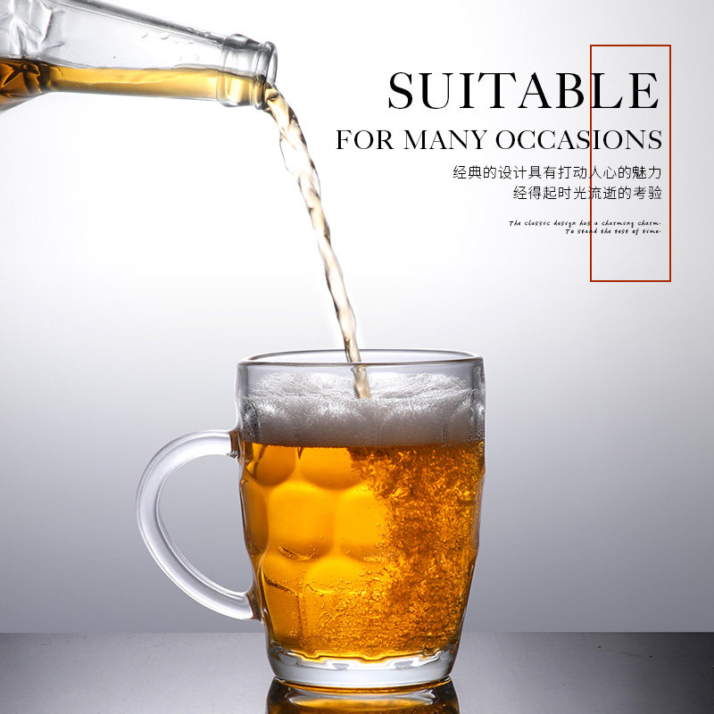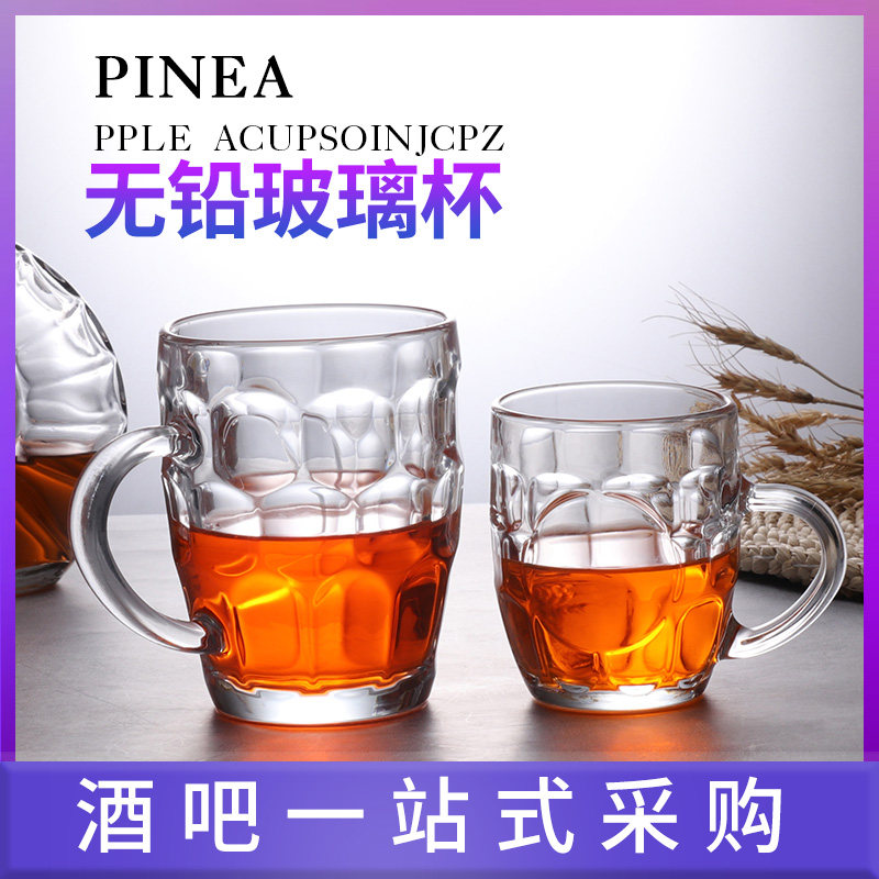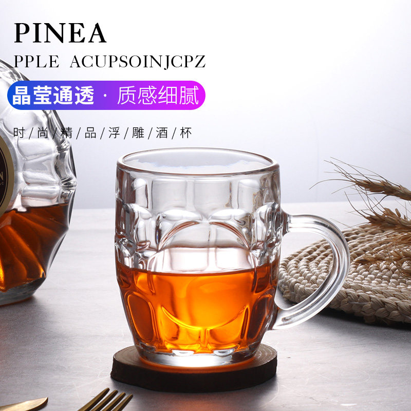 创意啤酒杯透明玻璃杯 菠萝杯带把加厚酒杯扎啤杯泡茶杯耐热6只装
