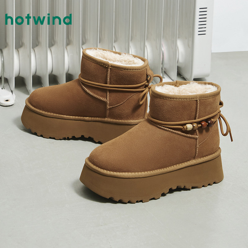 热风加绒雪地靴女鞋2025年冬季新款厚底增高棉鞋加厚保暖短筒靴子