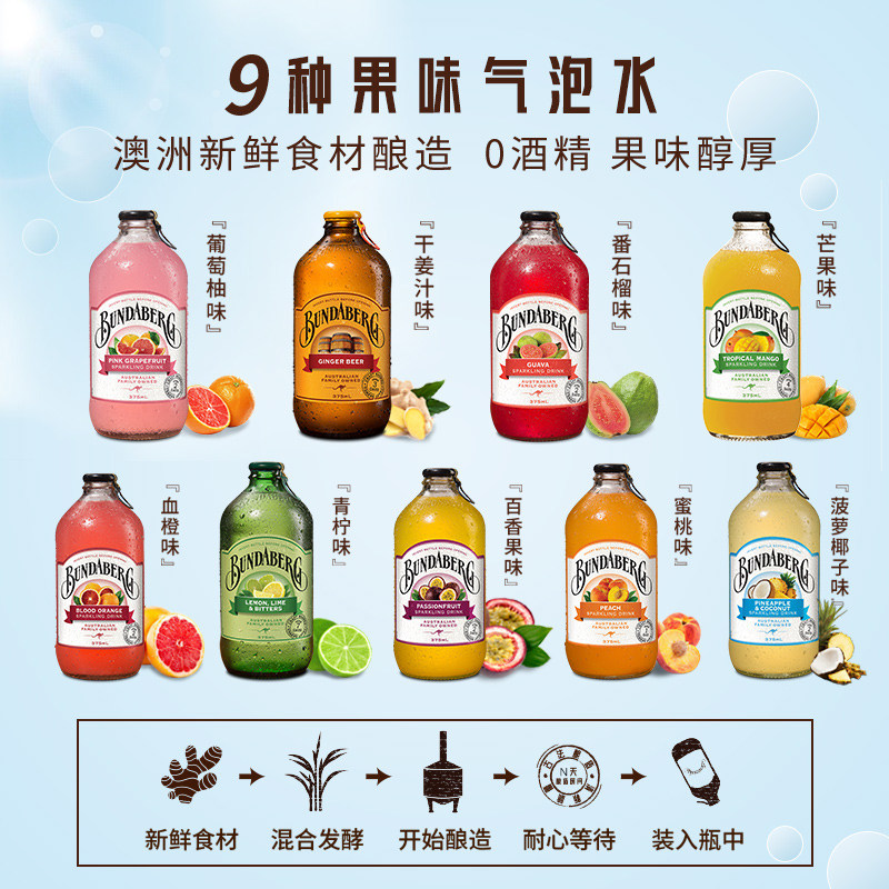 澳洲宾得宝汽水bundaberg姜汁干姜青柠果汁气泡水进口饮料旗舰店