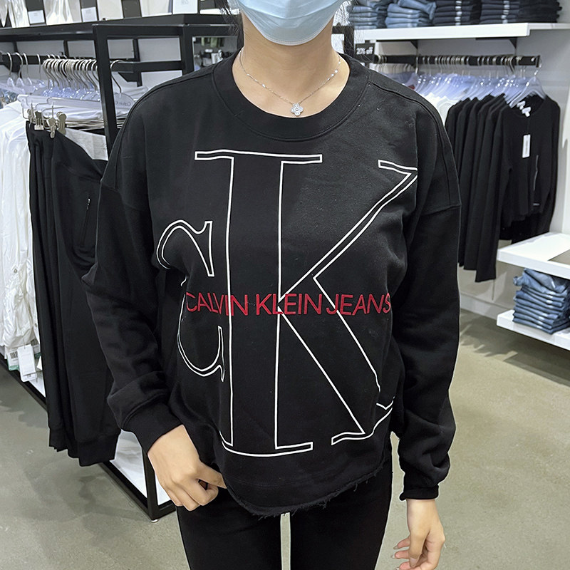 Calvin Klein CK 女士秋冬新款字母印花潮流宽松圆领套头长袖卫衣