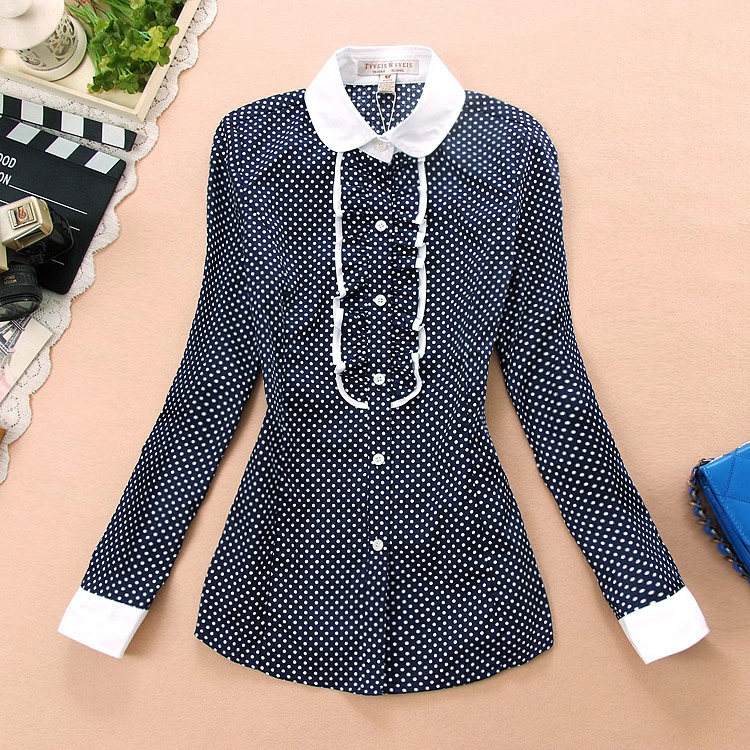 断码清 少女学生春秋长袖娃娃衬衫 甜美花边韩范小清新文艺衬衣女