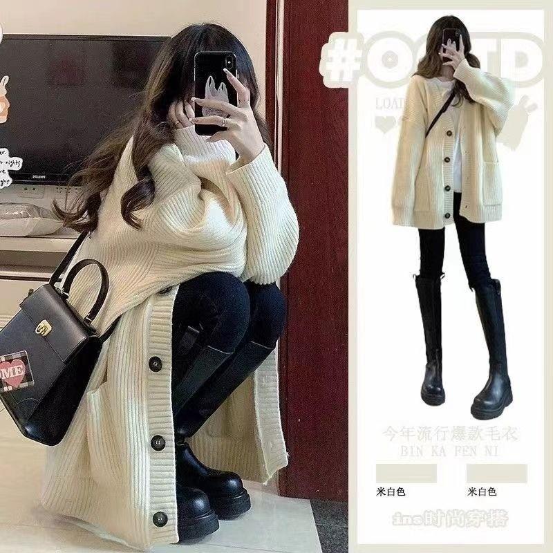 大码胖mm慵懒风复古软糯针织开衫春秋2024新款韩版宽松毛衣外套女