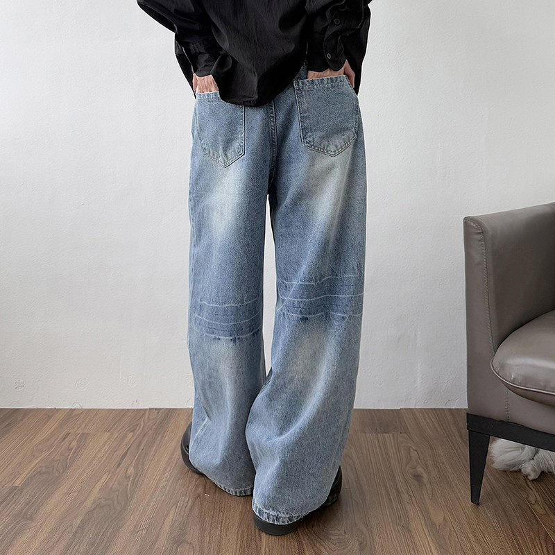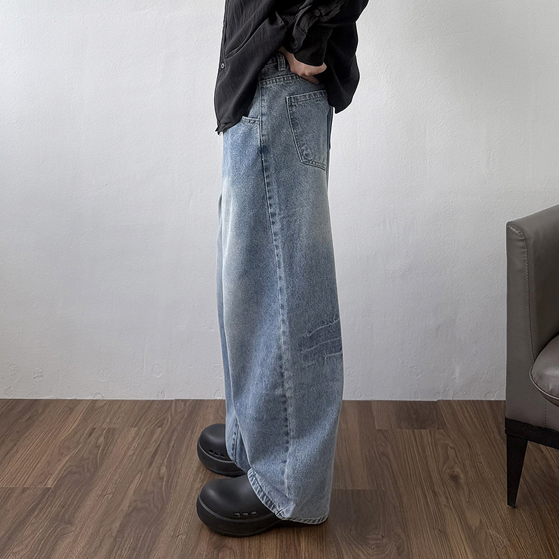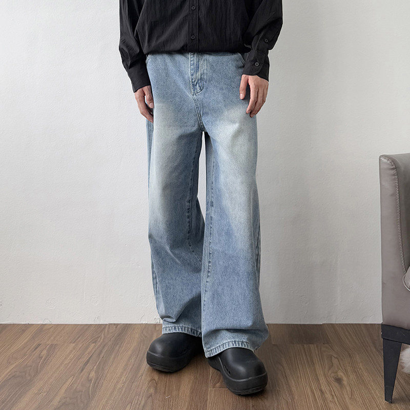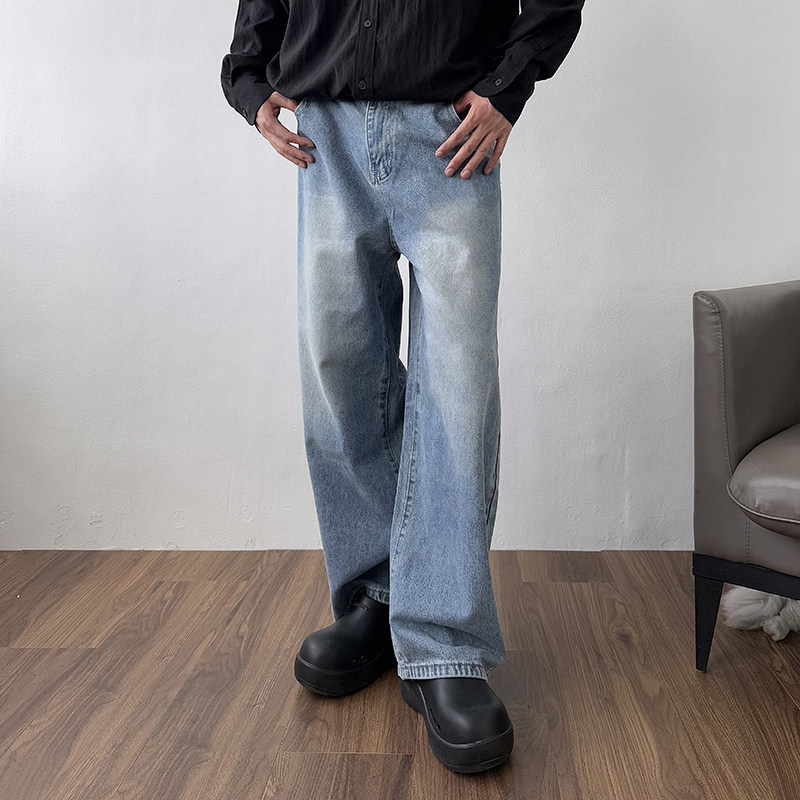 24LINE美式复古水洗蓝牛仔裤男vibe风格裤子2026新款宽松直筒长裤