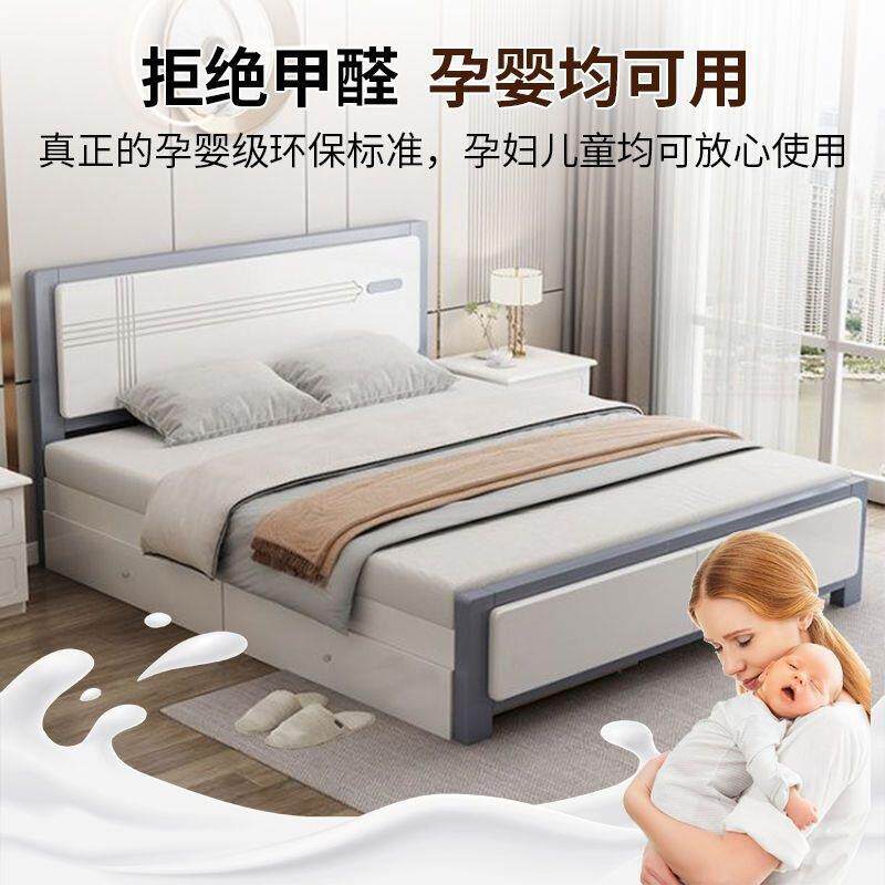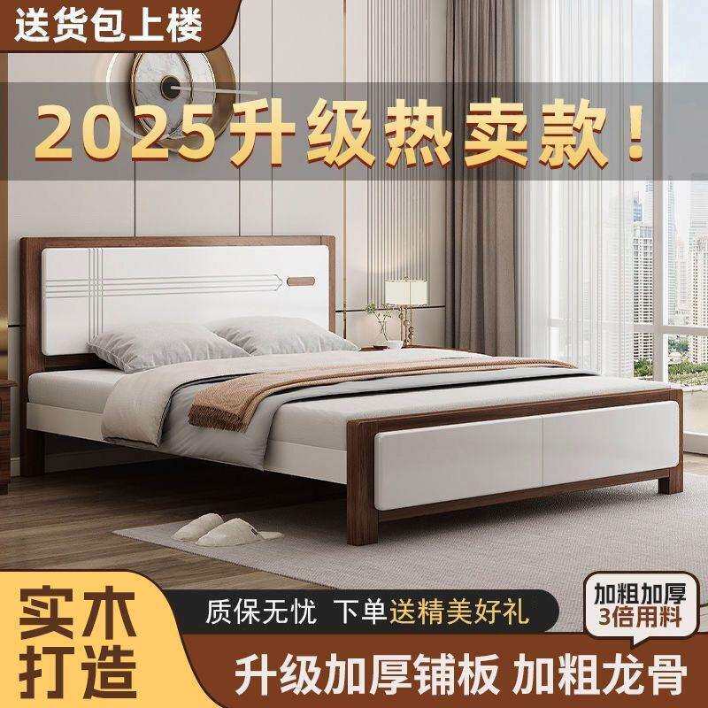全实木床简约实木床现代双人床米主卧大床家用出租屋储物床婚大床