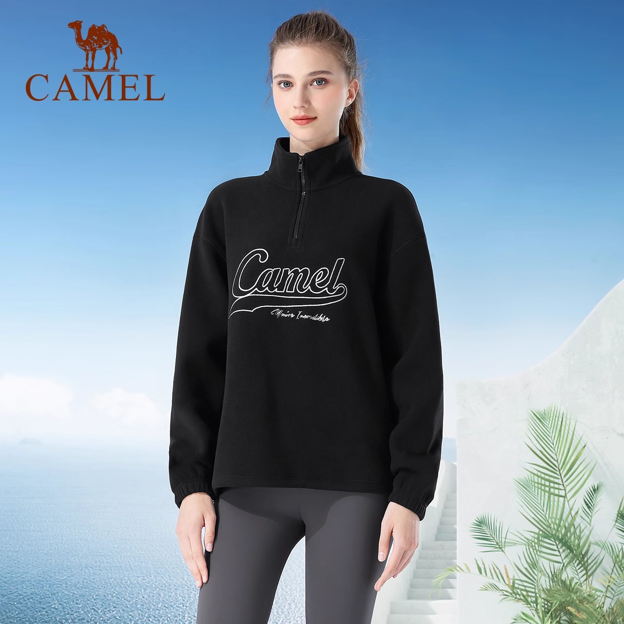 骆驼运动套头上衣保暖加厚男女秋