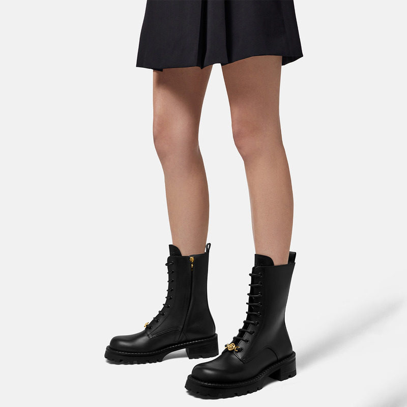 【季末优惠】VERSACE/范思哲 女士Vagabond系带皮靴