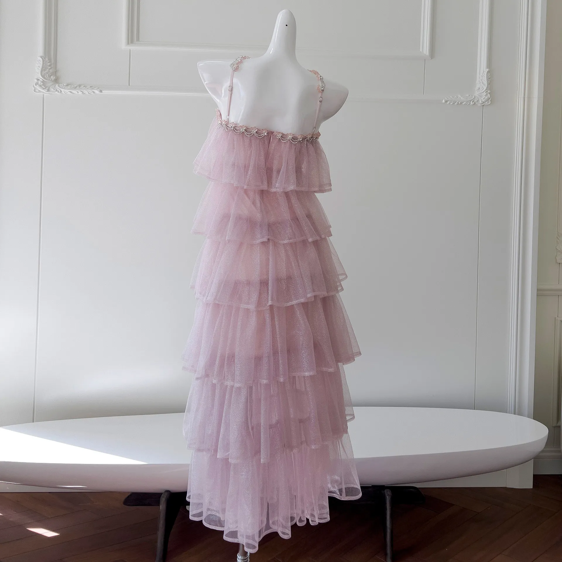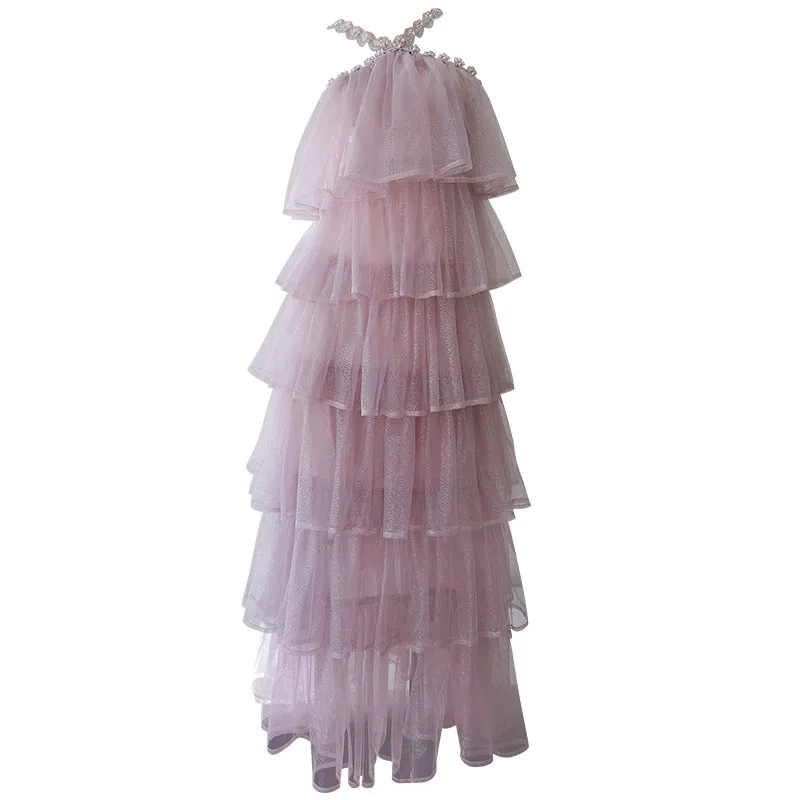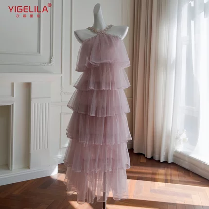 气质名媛风挂脖水钻连衣裙长款蛋糕裙小礼服