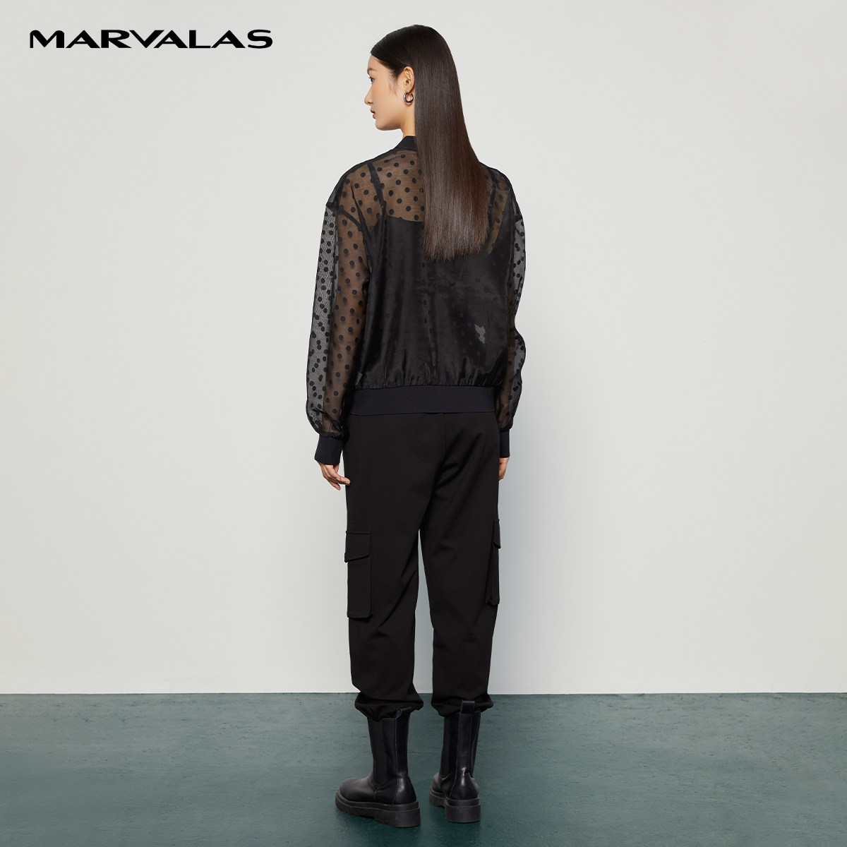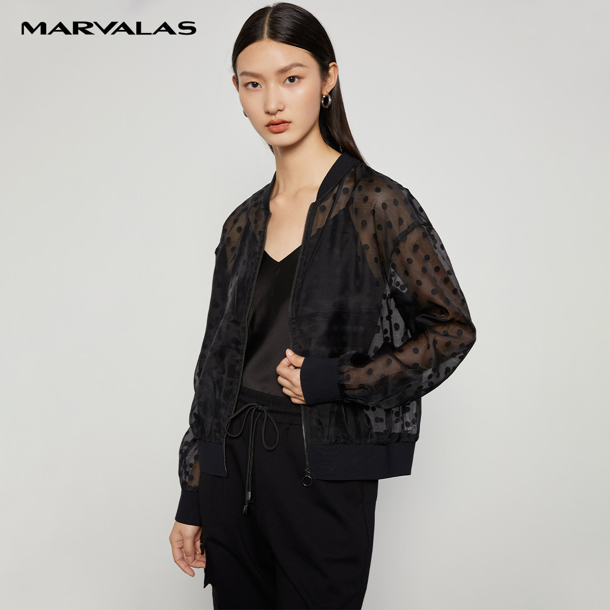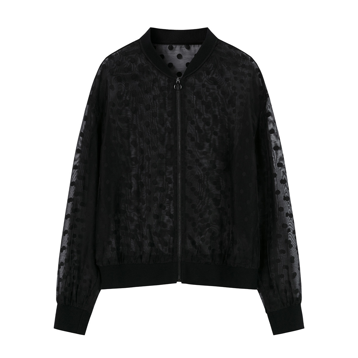 曼德诗提花纱线棒球服女2025秋季新品设计感黑色波点舒适薄外套