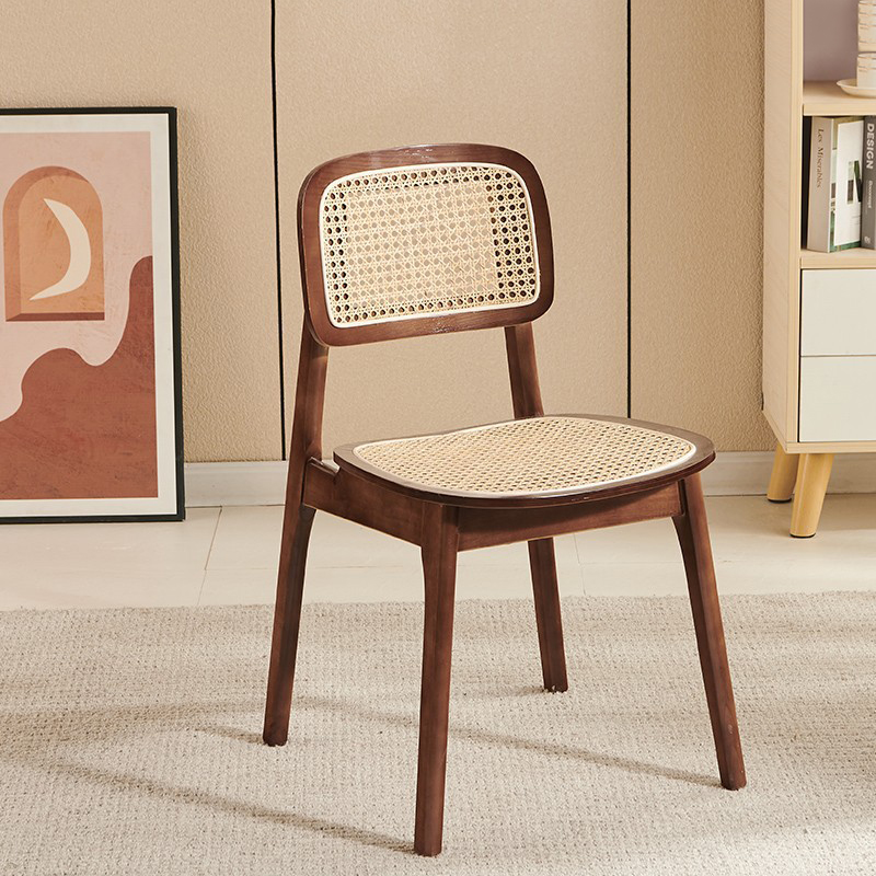 藤椅靠背椅子藤编椅侘寂风北欧家用餐桌椅设计师餐椅原木实木凳子
