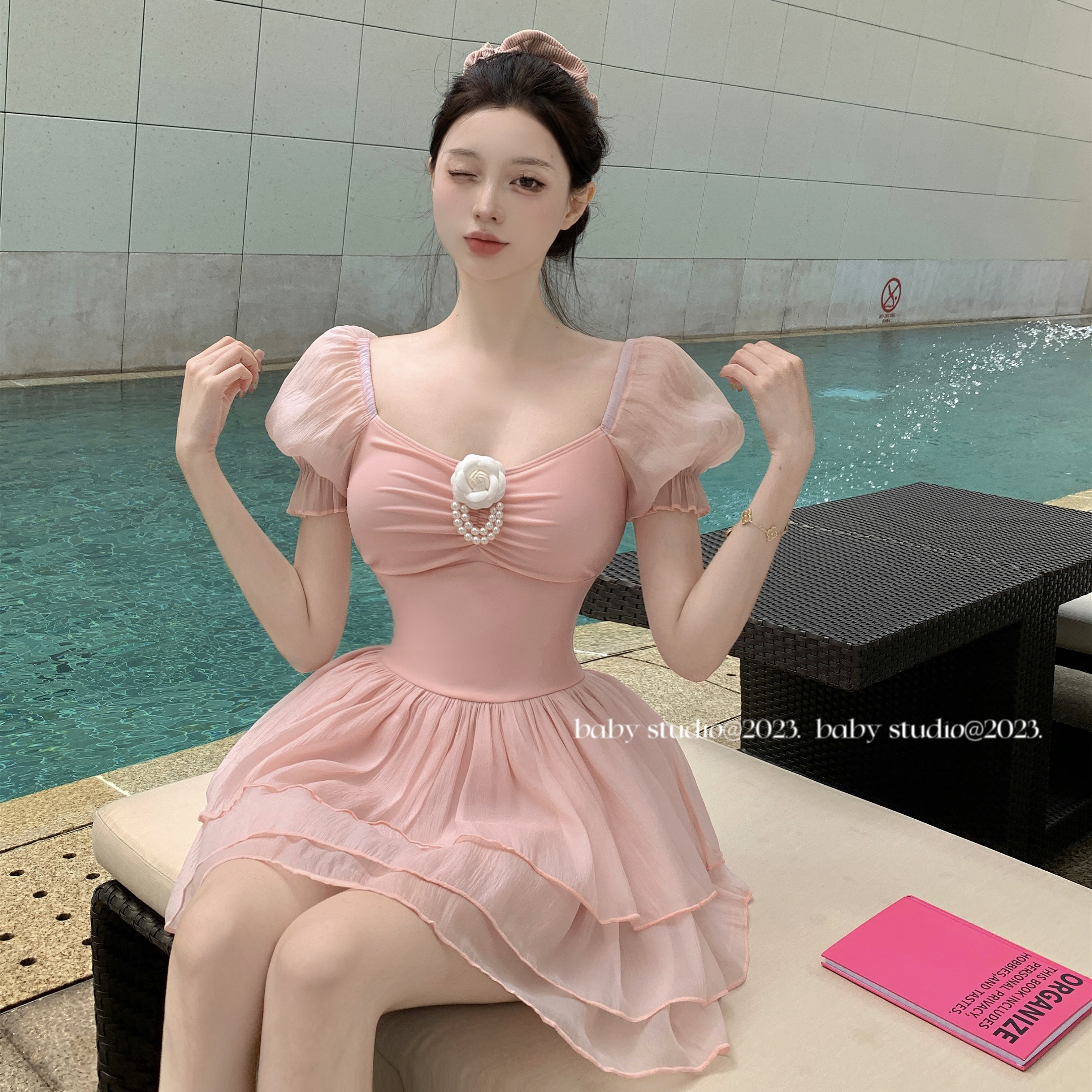 泳衣女夏季新款仙女范甜欲风小胸聚拢遮肚显瘦保守学生连体裙式