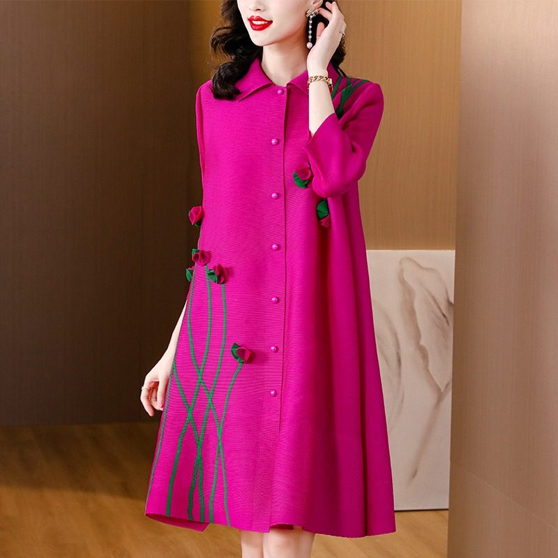 高端褶皱连衣裙2025春秋新款气质大码纯色宽松衬衫a字开衫裙