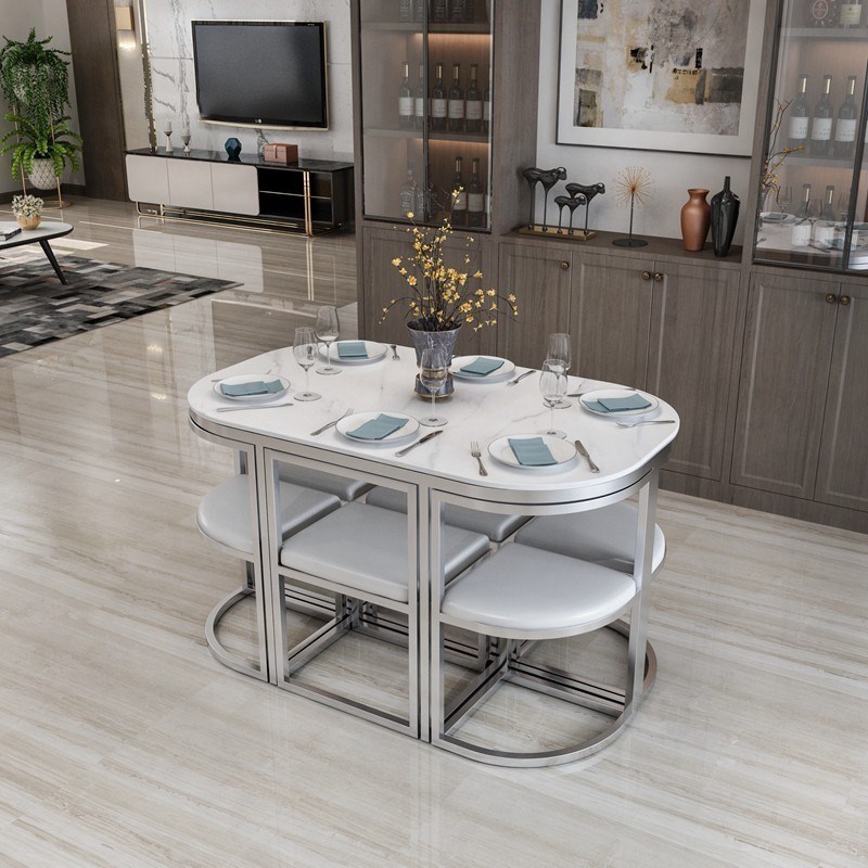 大理石餐桌椅子组合现代简约折叠餐桌家用L小户型北欧可伸缩吃饭