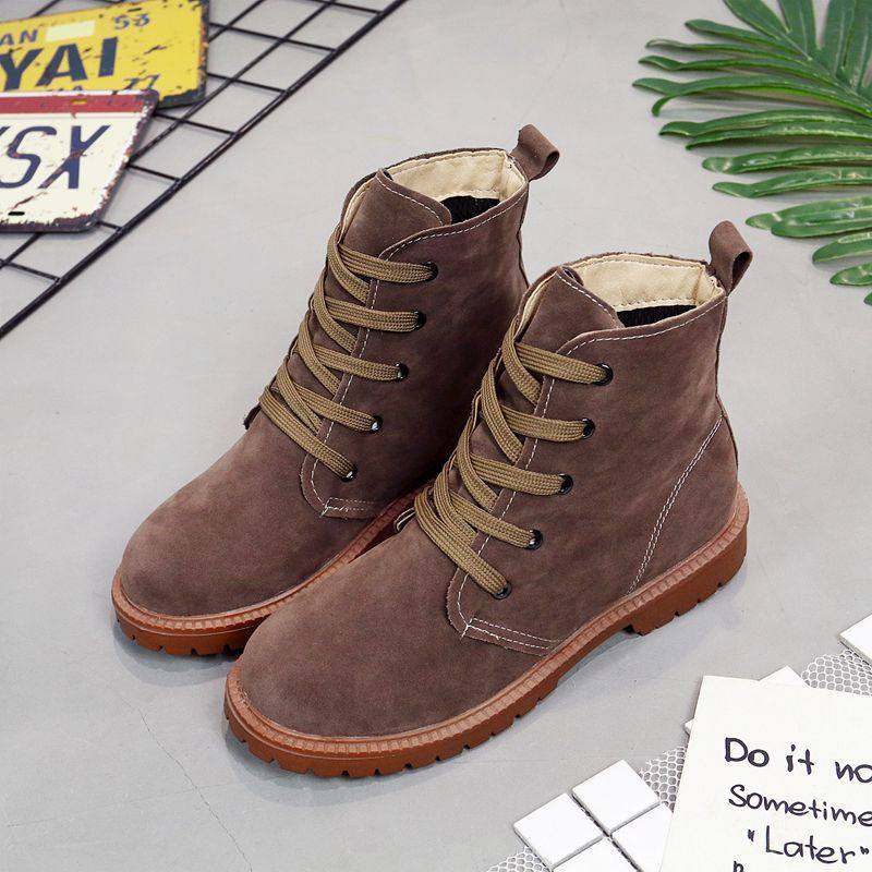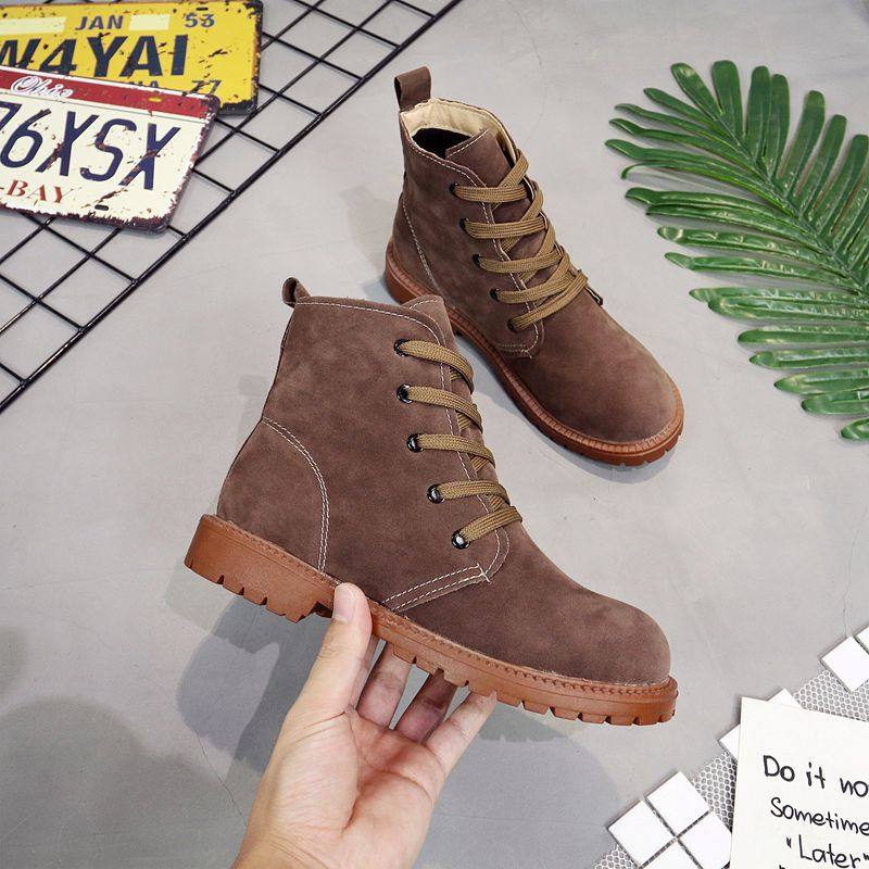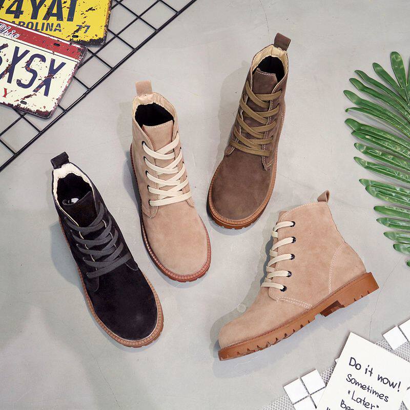 秋冬新款英伦百搭马丁靴女平底高帮棉靴休闲学生网红短靴系带女鞋