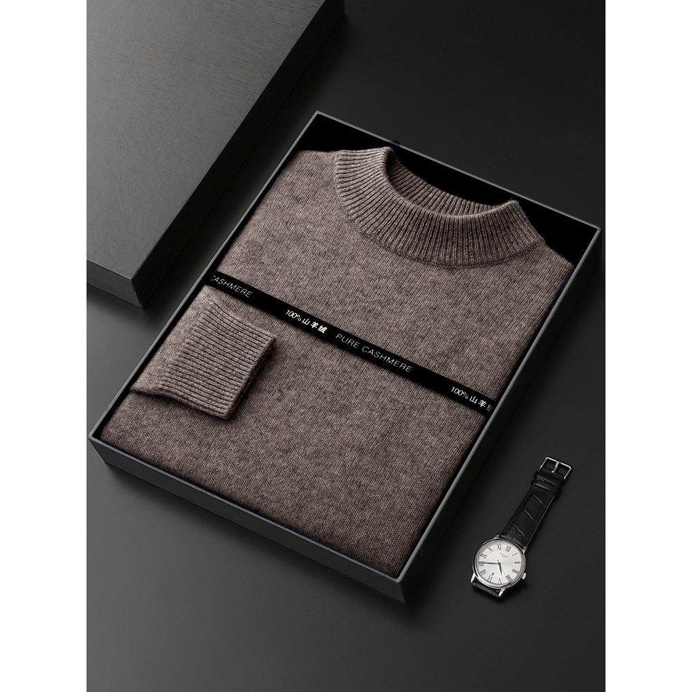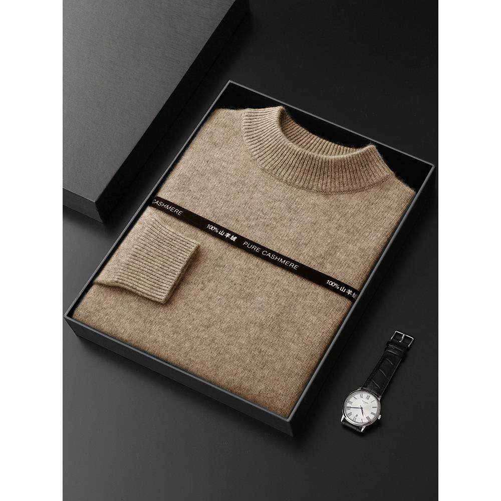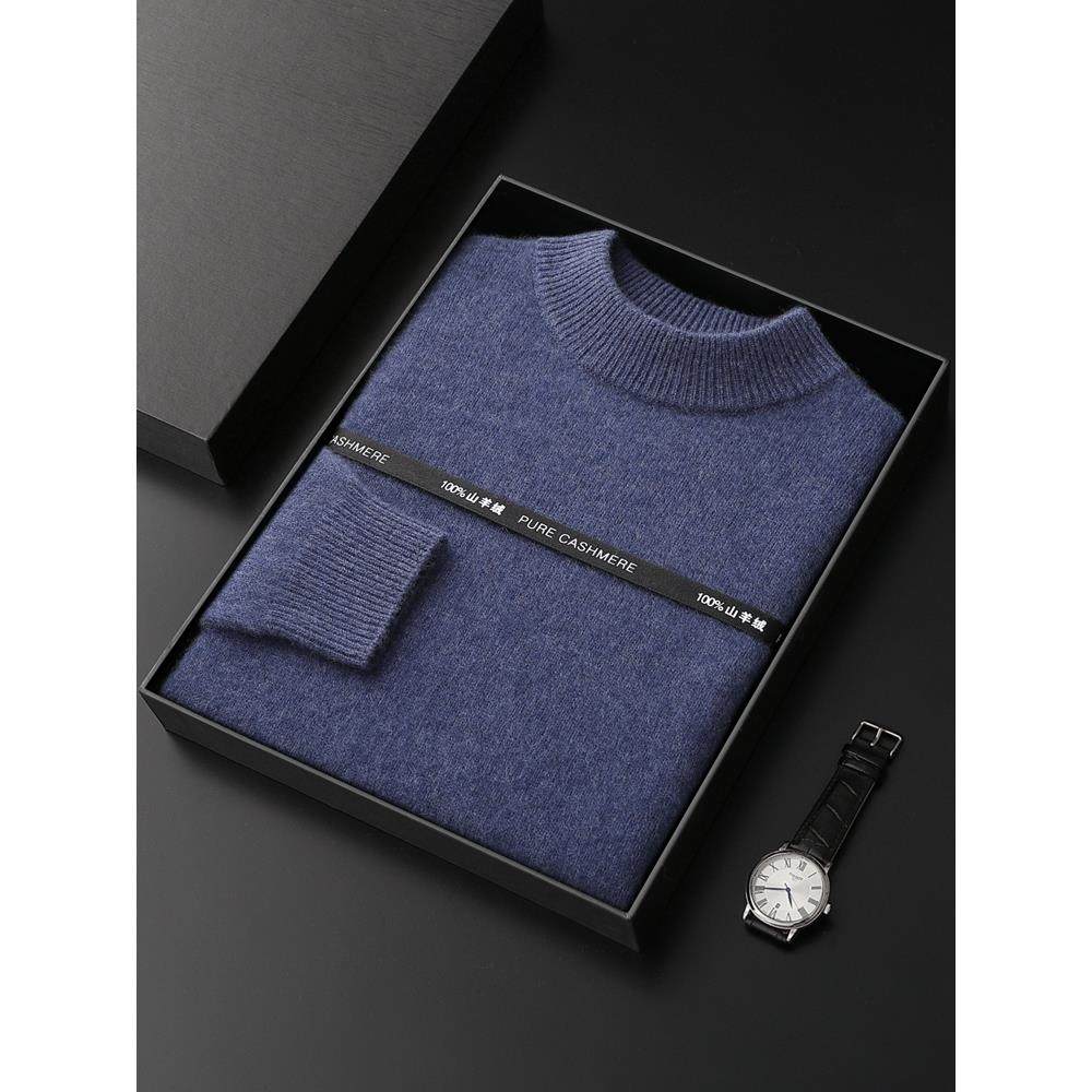 鄂尔多斯市100%纯山羊绒衫男士加厚半高领毛衣秋冬新款针织羊毛衫