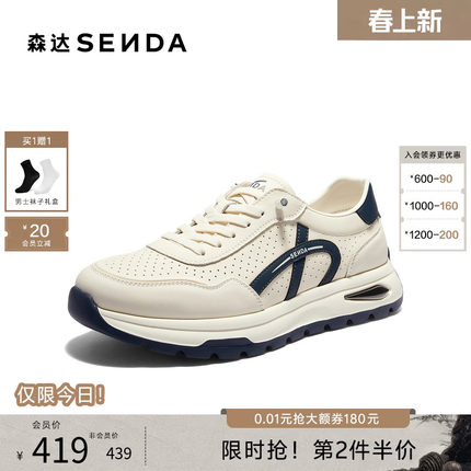 森达阿甘鞋男2026夏新商场同款运动风厚底简约休闲板鞋子2EP01BM6