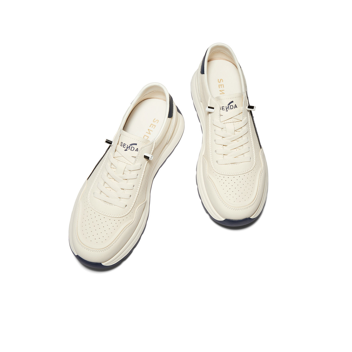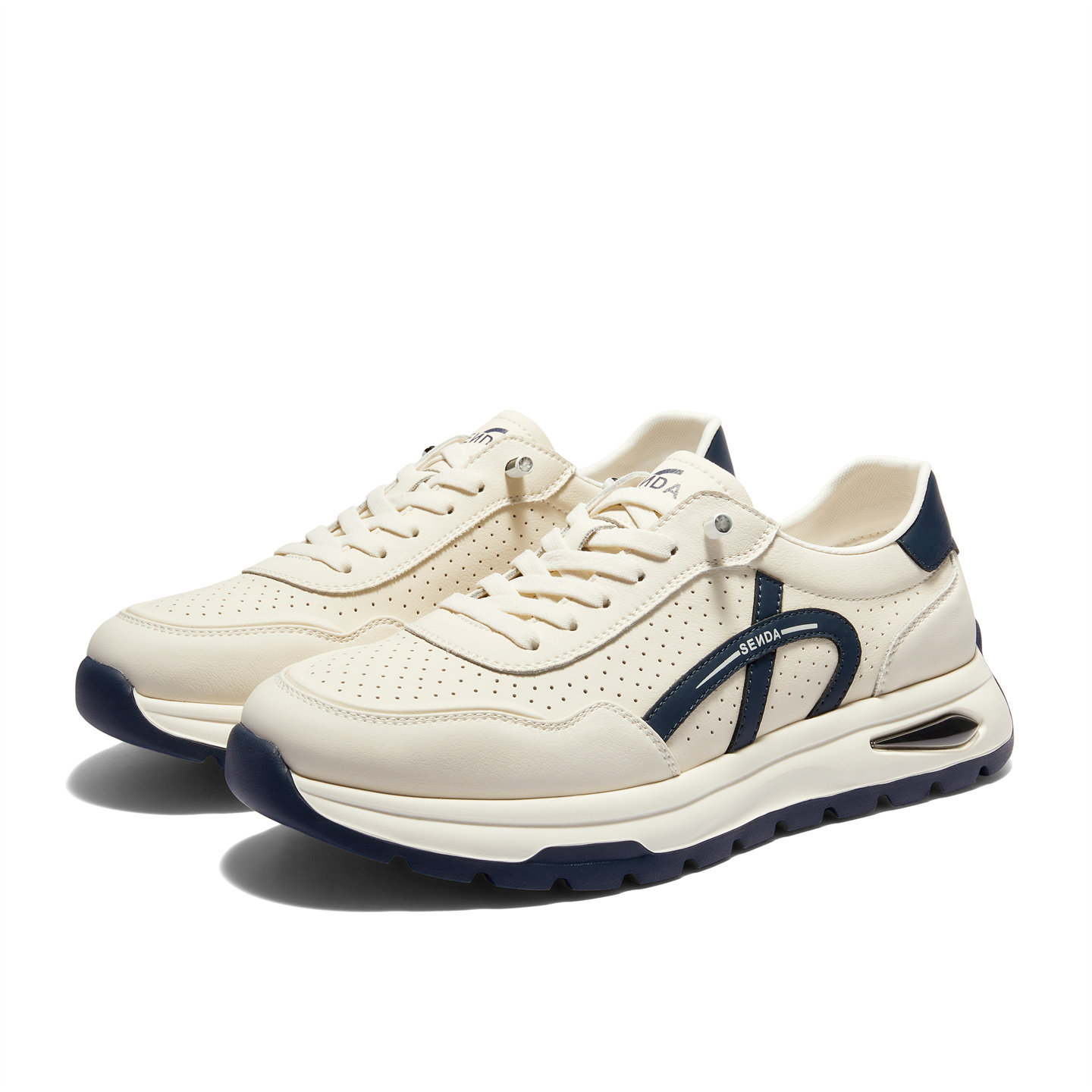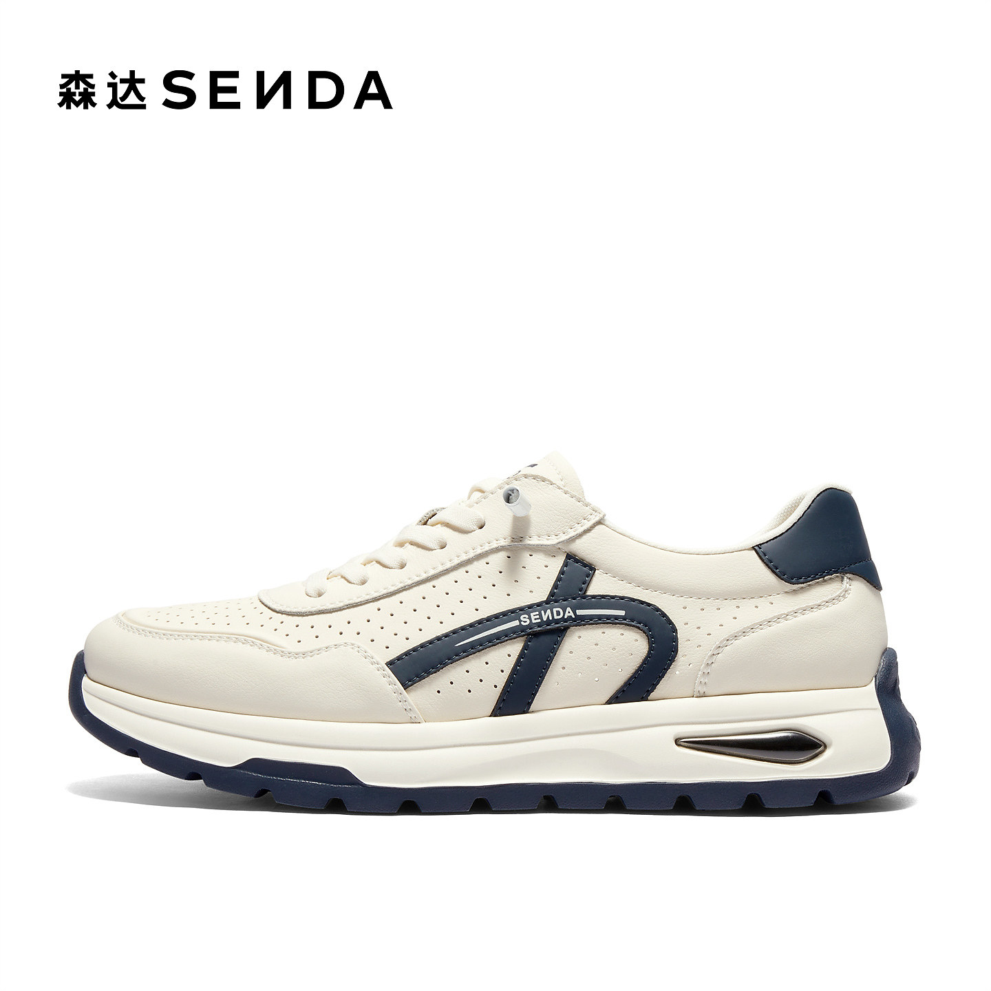 森达夏季新款打孔厚底休闲板鞋男