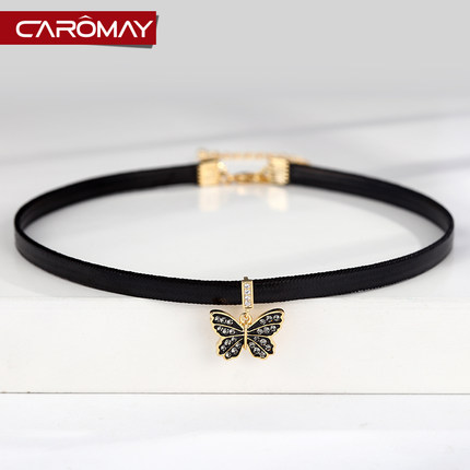 森系蝴蝶颈链项圈女choker短款黑色锁骨项链轻奢小众脖子饰品颈带
