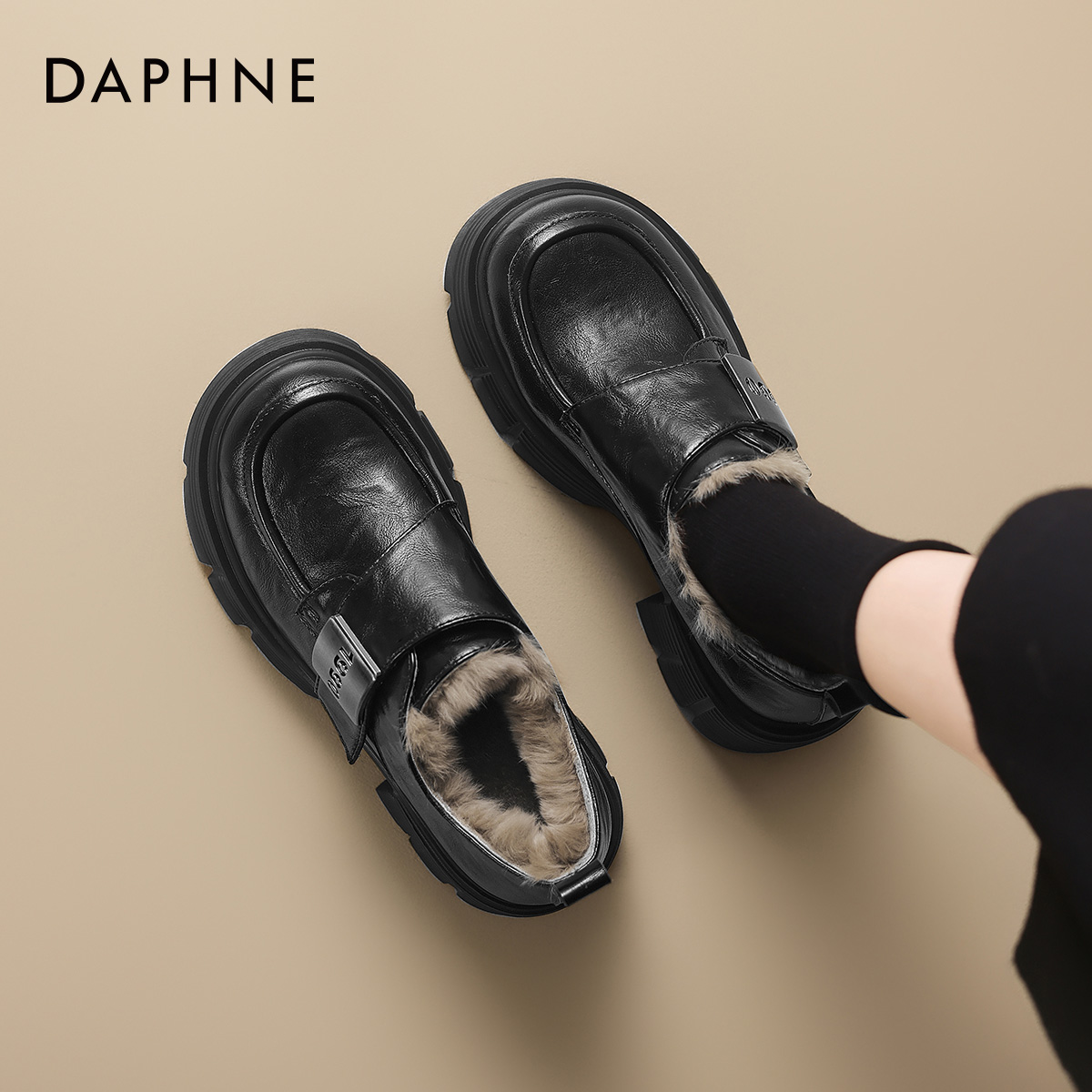 达芙妮厚底增高加绒冬季乐福鞋女