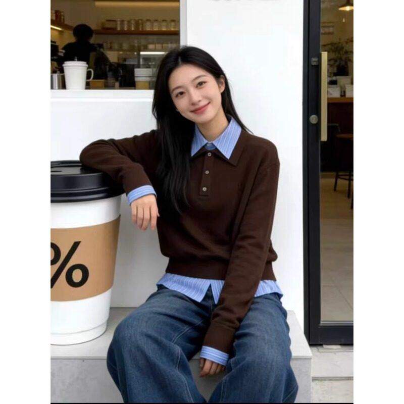 假两件boxyfit拼衬衫针织衫商场同款26春新5H2230631