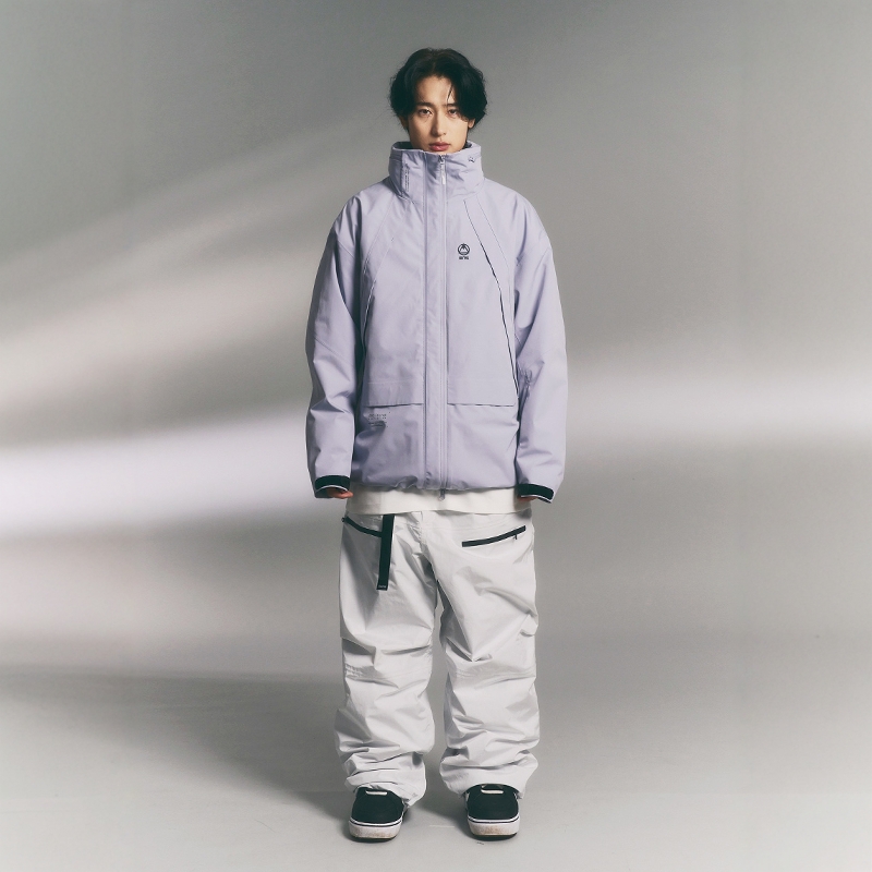 24ELNATH韩国滑雪服衣防水防风耐磨男女款单板双板紫色拉链连帽3L