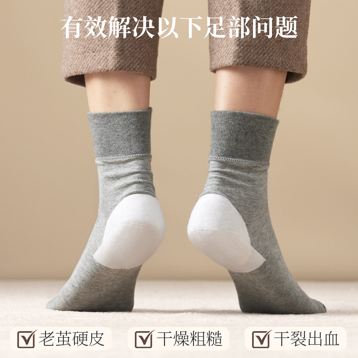 防裂袜子男款春秋中筒袜防后跟干裂足裂保湿棉袜老人秋冬厚男袜