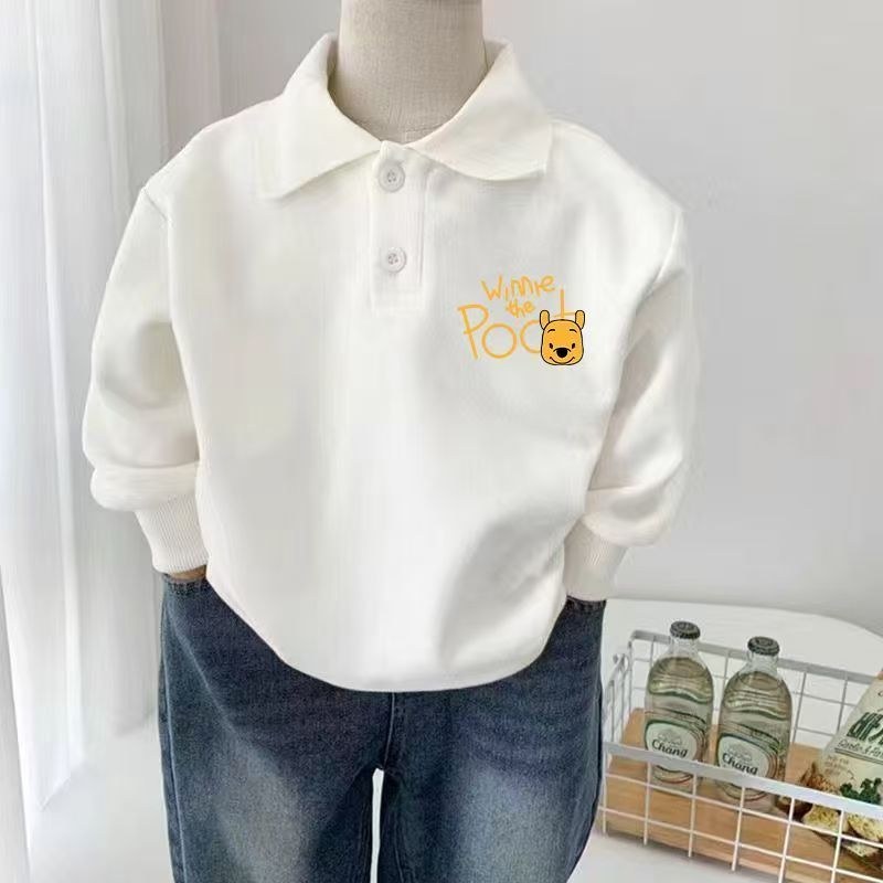 纯棉保暖翻领长袖T恤打底衫男女童polo领卫衣春秋中大童加绒上衣