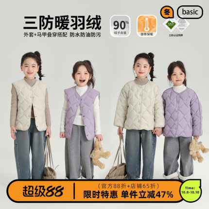 布丁哈鲁童装冬装女童外套2025秋冬季新款儿童加绒加厚羽绒服马甲