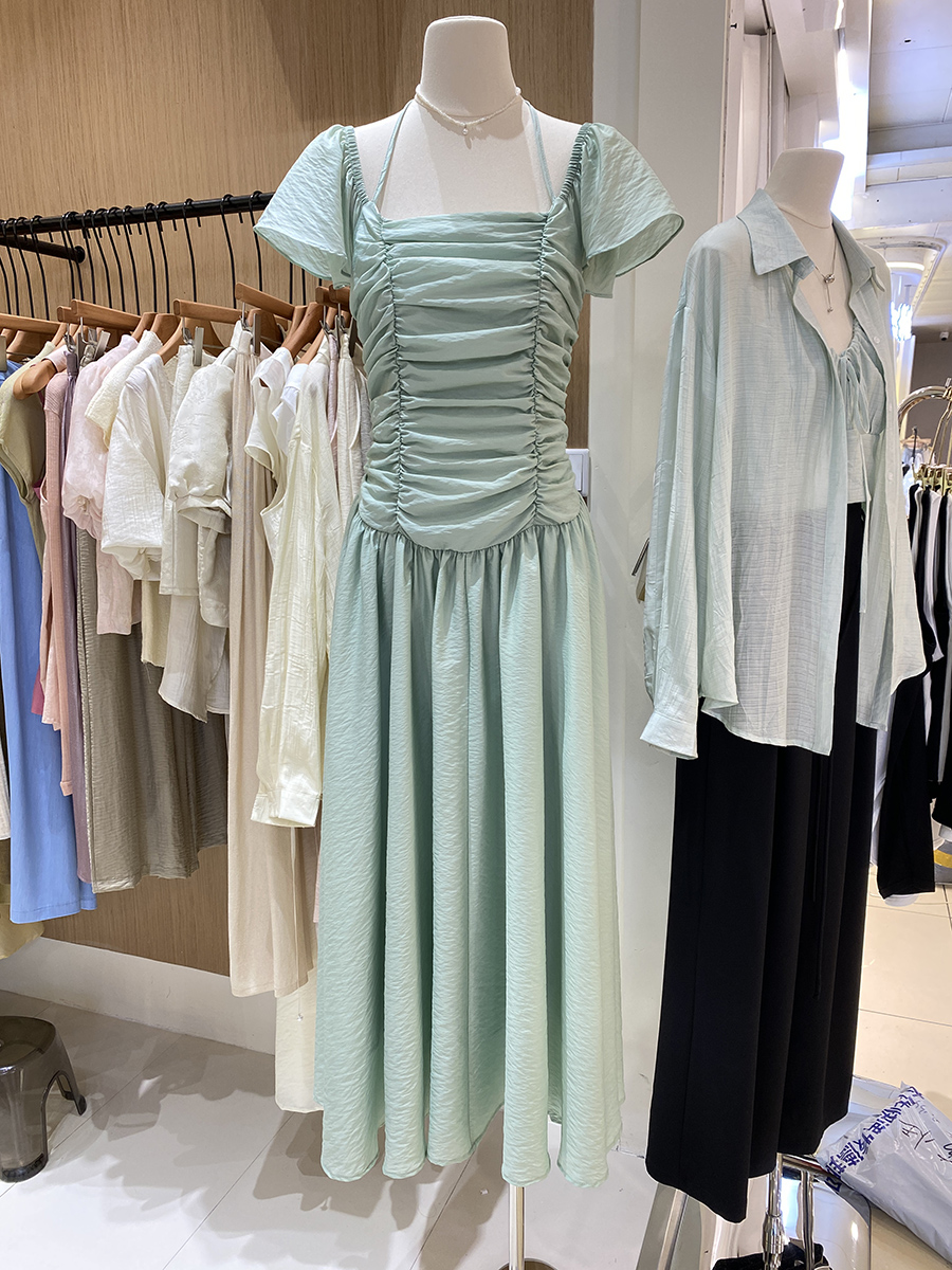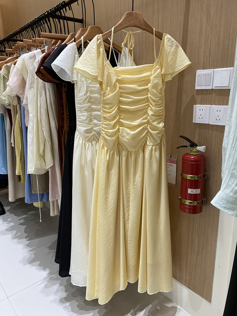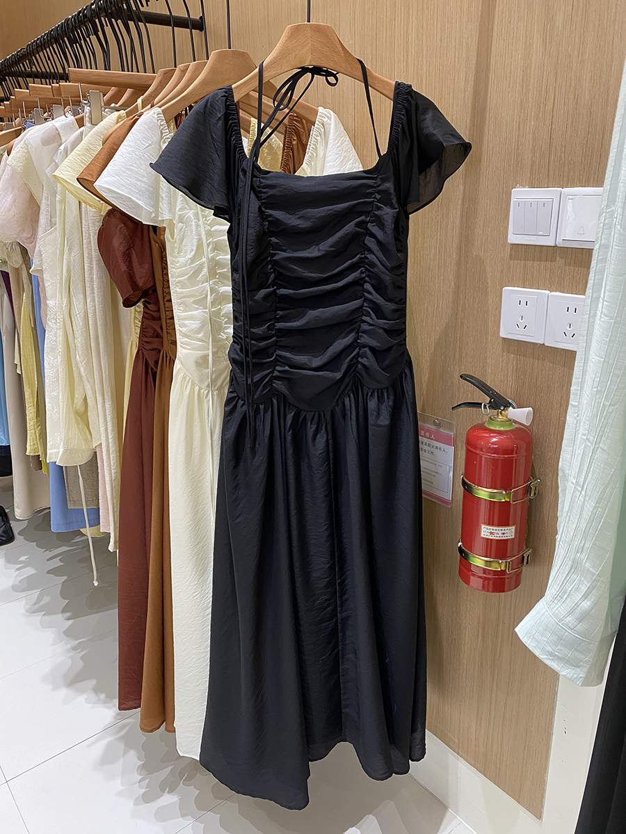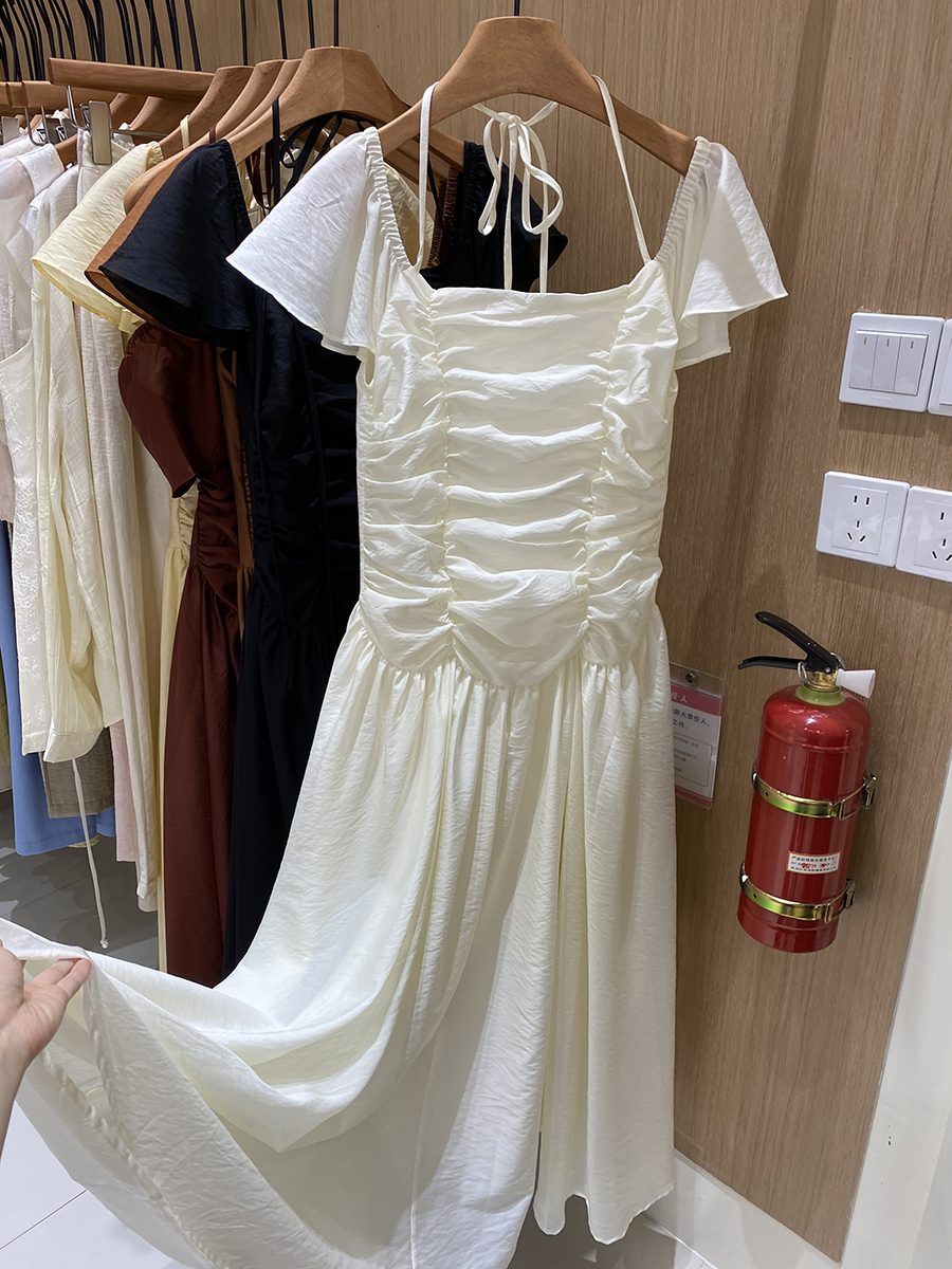 韩系ins法式一字肩吊带连衣裙夏季新款气质收腰长裙高级感小礼服