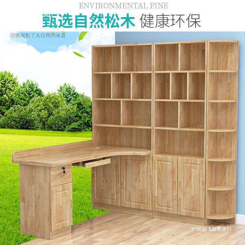 木转角书桌学带书架一体组柜电脑写字台习实23256桌儿童拐角书房
