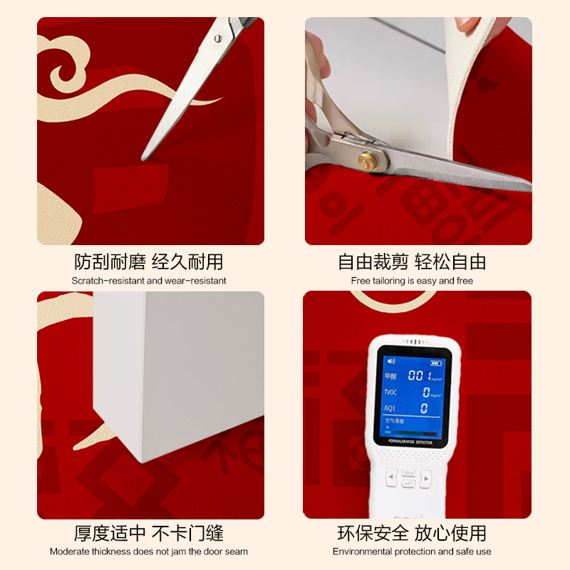 新中式入户门地垫红色喜庆进门门口可擦免洗脚垫玄关皮革PVC地垫