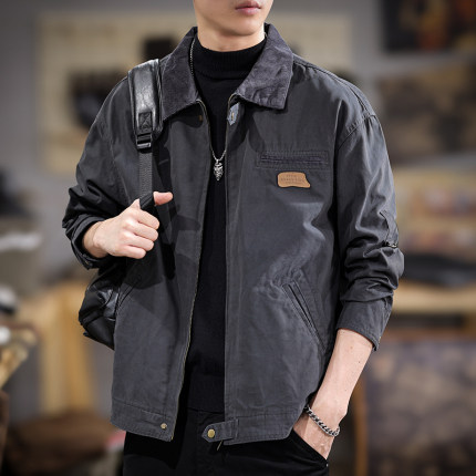 2025秋冬新款纯棉高端男士外套美式复古痞帅高级感底特律工装夹克