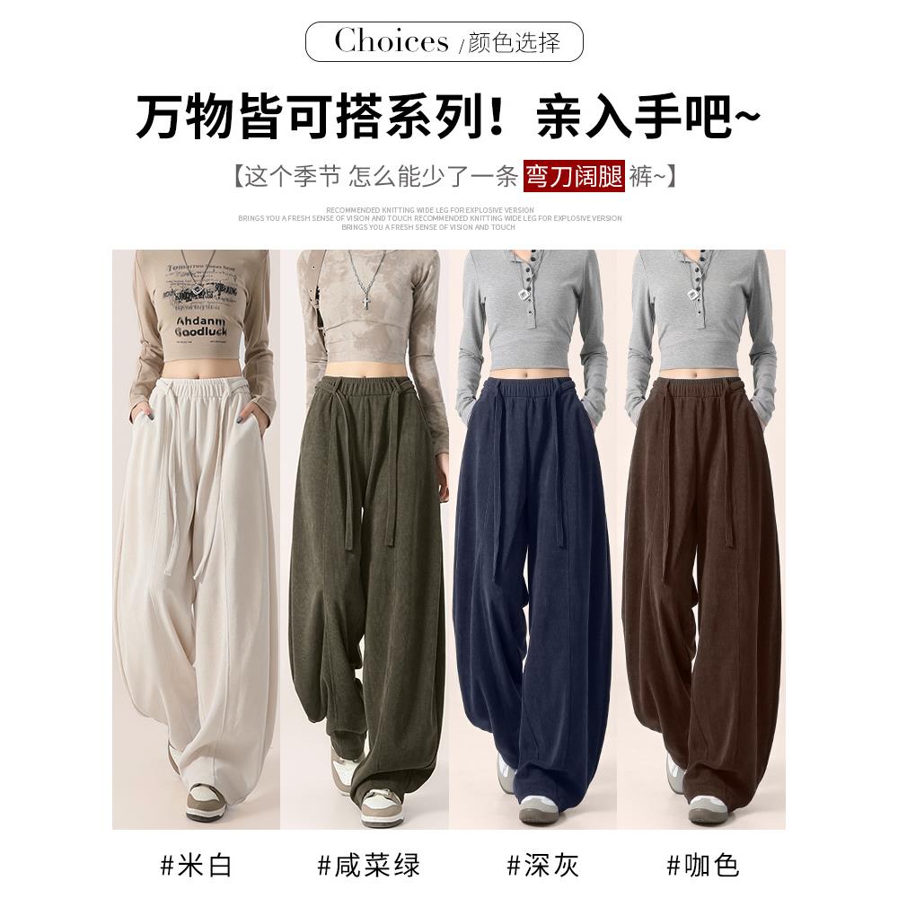 美拉德咖色弯刀裤女2025秋季慵懒松弛感阔腿裤子加长休闲黑色酒红