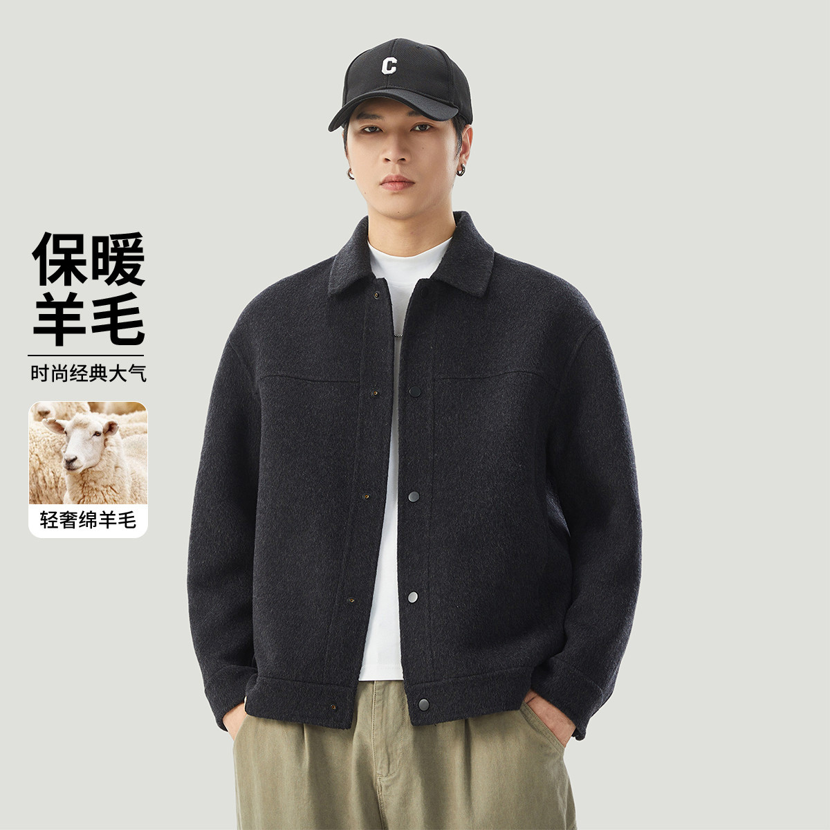 【含绵羊毛】韩系短款简约翻领男式外套时尚休闲宽松双面毛呢大衣