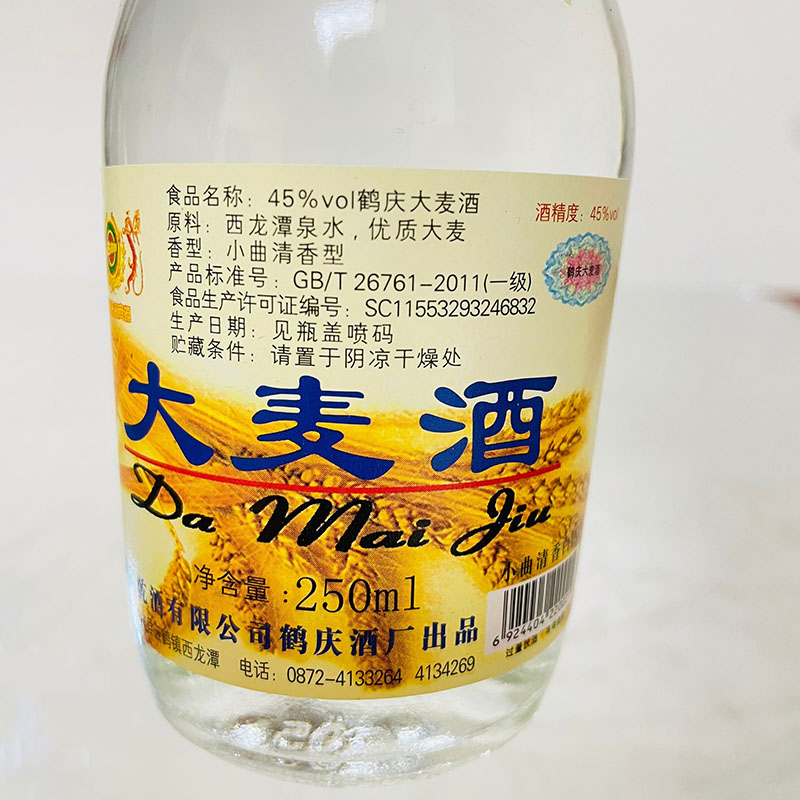 云南特产酒古翔鹤庆大麦酒鹤庆亁酒优质纯粮45度中度250ml×12瓶