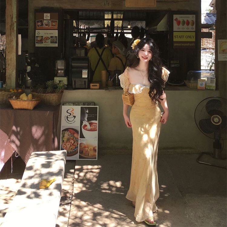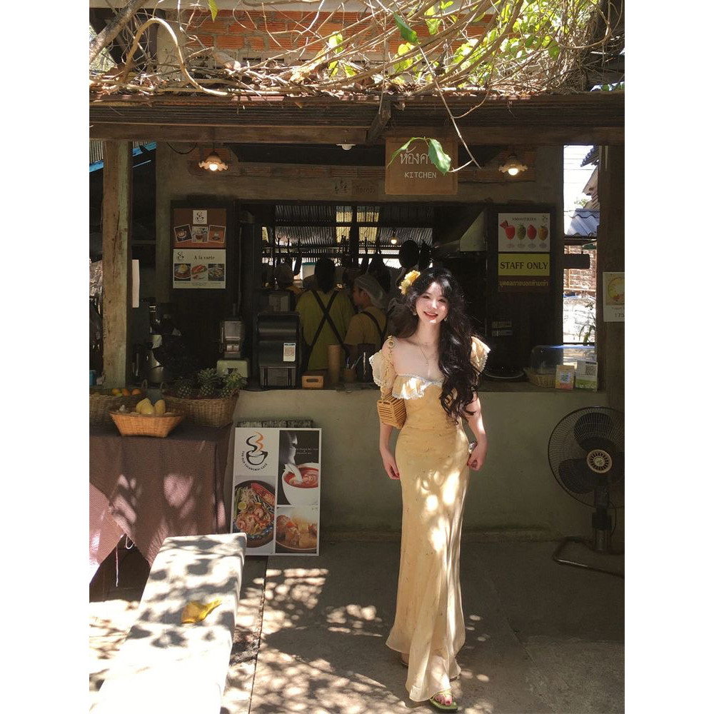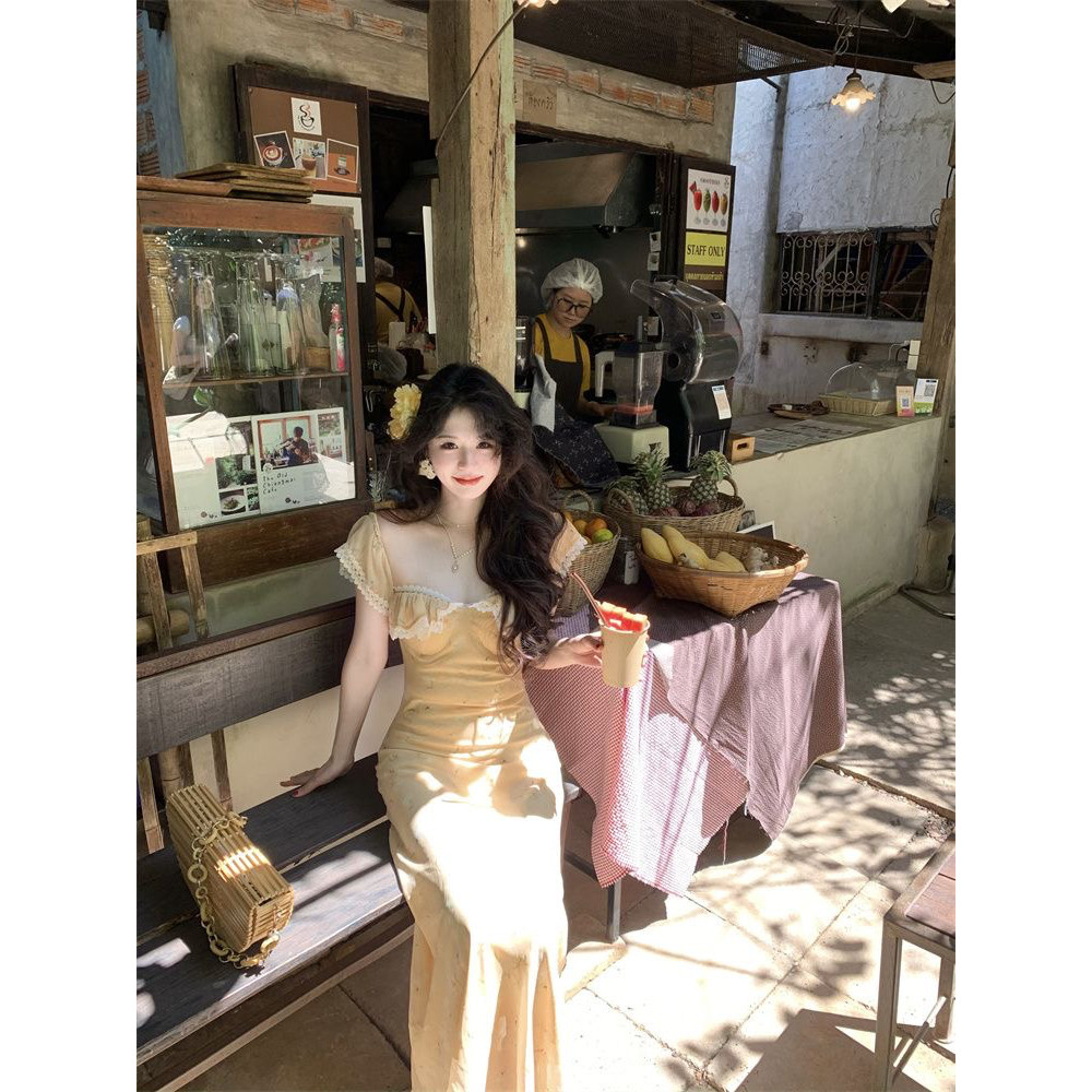 法式温柔风收腰蕾丝边无袖连衣裙气质春季度假绝美收腰显瘦长裙女