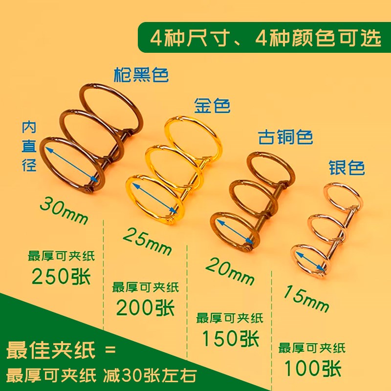 三连环活页金属圈 通用3孔6孔装订铁圈环书圈diy日历台历相册用金